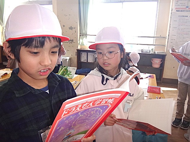 学校探検を楽しんでいます。