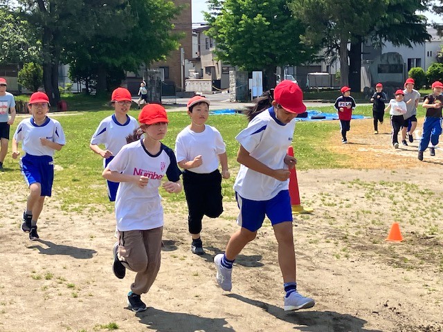 今朝の登校時、学校周辺を一回りし学校に戻って