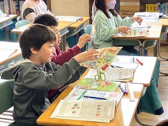 次は3年生。机の上には、アルファベットの