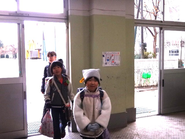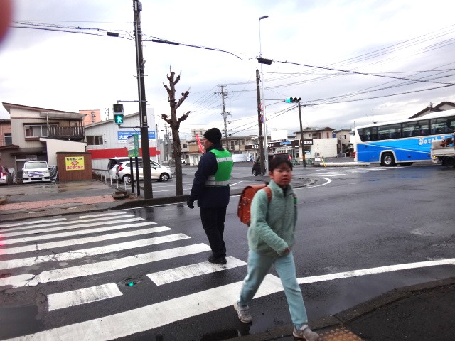 今朝も、安全を見守られながら元気に登校です。