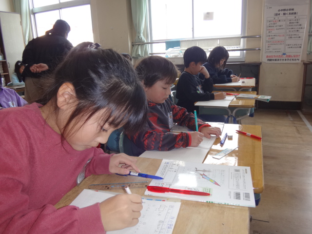 姿勢を正して勉強する小中野っ子。