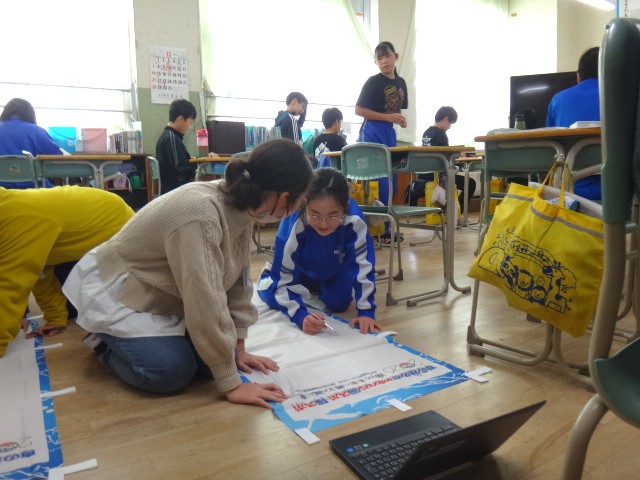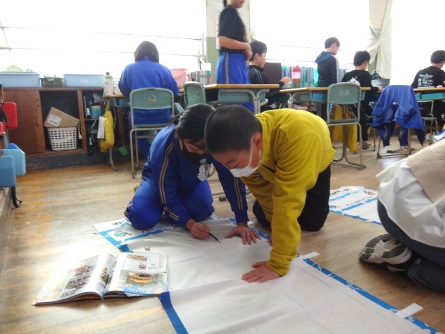 国スポで使うのぼり旗を作成していました。