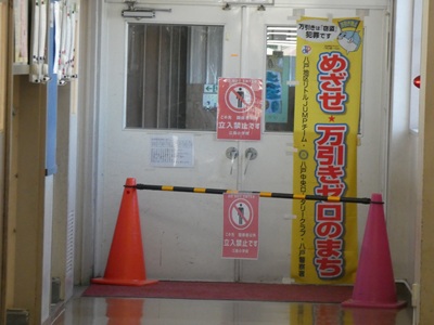 地震の影響により体育館の渡り廊下を通行止めにしているため、