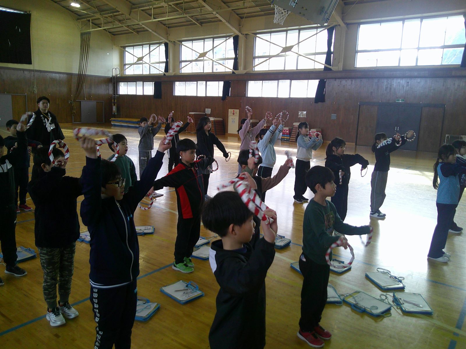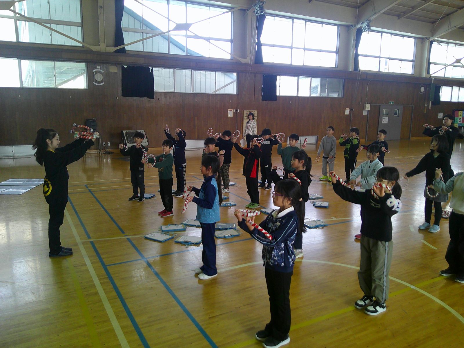 10日は、体育館で「えんこえんこ」の実演。