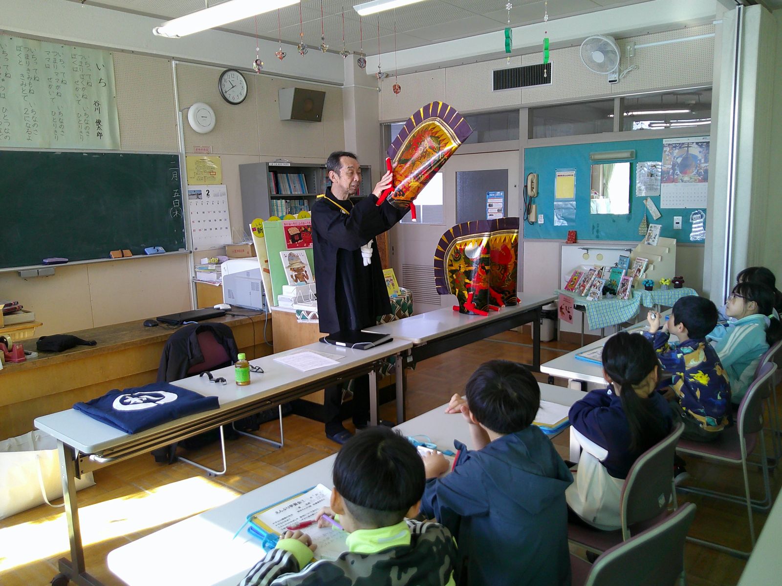 2月4日(水)と10日(火)に3年生が「えんぶり学習会」を行いました。どちらも売市えんぶり組の方が講師として来校し、えんぶりの歴史や舞など丁寧に指導してくださりました。