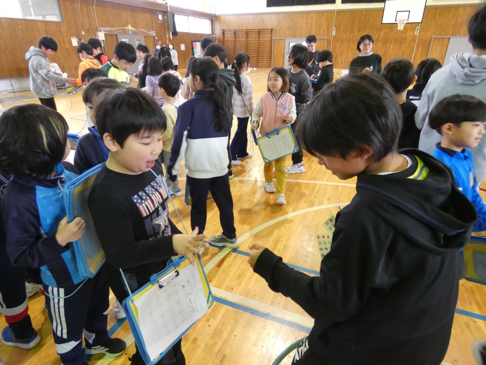 6年生に関する〇✕クイズに、全校児童が一喜一憂して盛り上がりました。