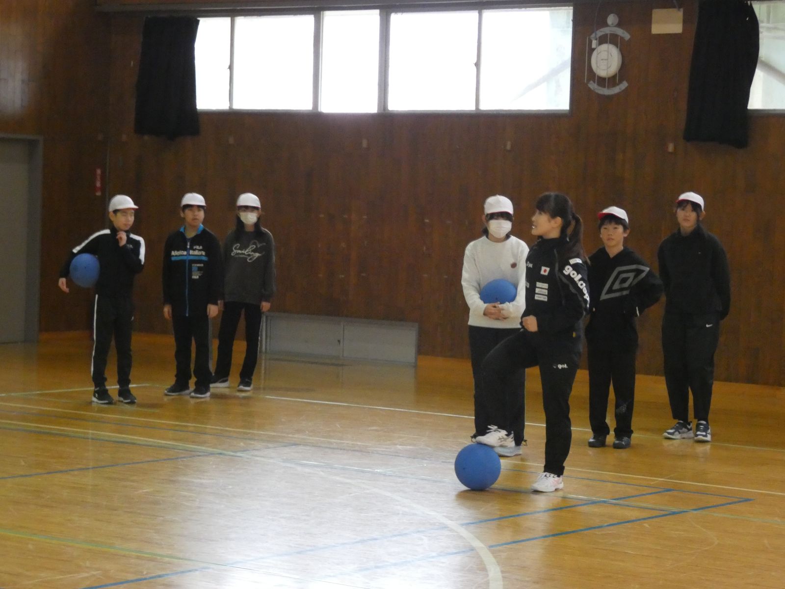 11月10日(月)に6年生がゴールボール体験会をしました。パリパラリンピックで日本代表選手として活躍した「天摩由貴さん」に講師を務めていただきました。