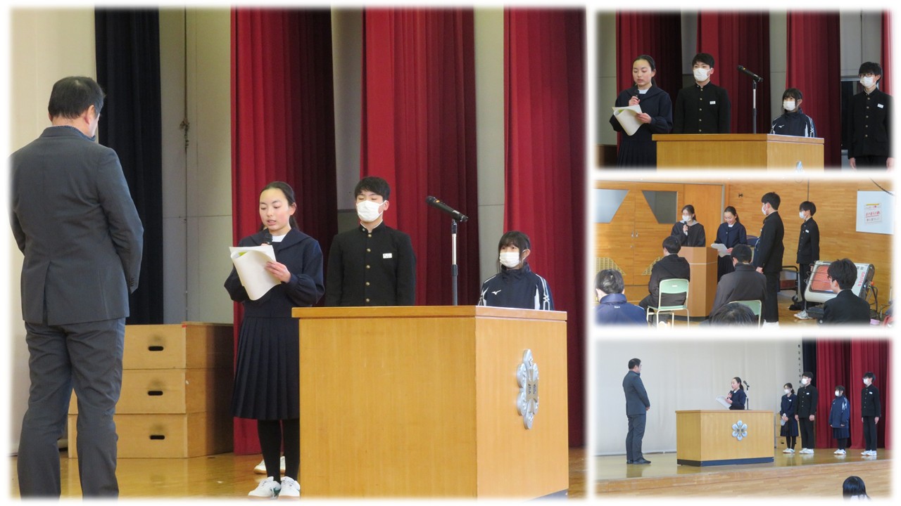生徒を代表して生徒会長から激励があり、