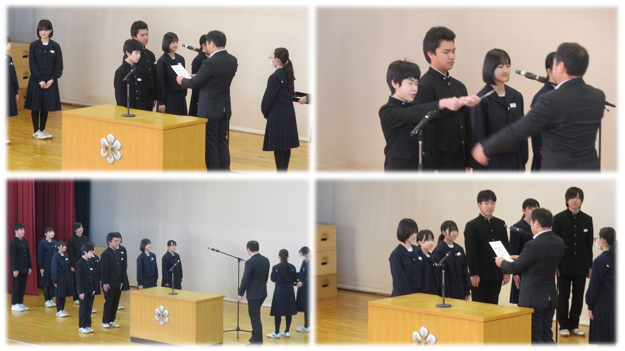 生徒を代表して生徒会長が校長先生に手渡しました。
