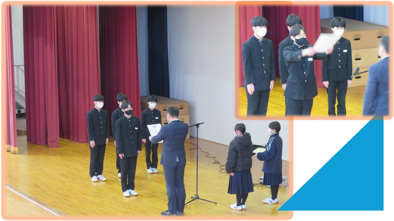 さて、本日の全校朝会は、まず賞状伝達から始まりました。