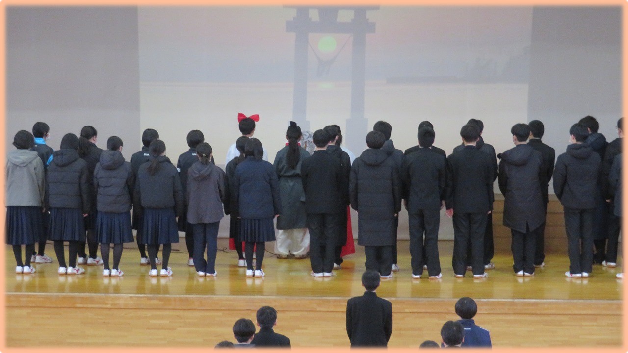 最後は、全校生徒で御来光に向かい、合格を祈念して