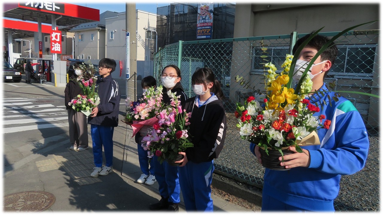 江陽地区にある施設に生徒会役員が代表となり届けてきました。