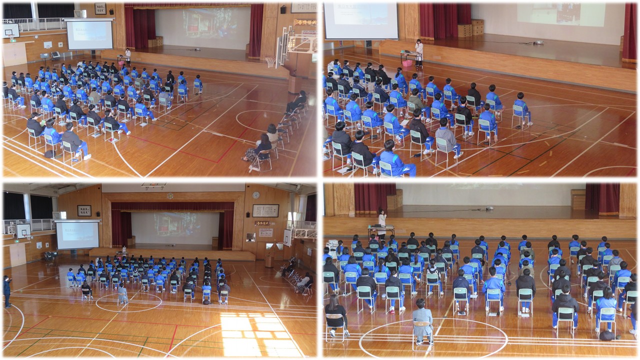 全校生徒が再び体育館に集合しました。