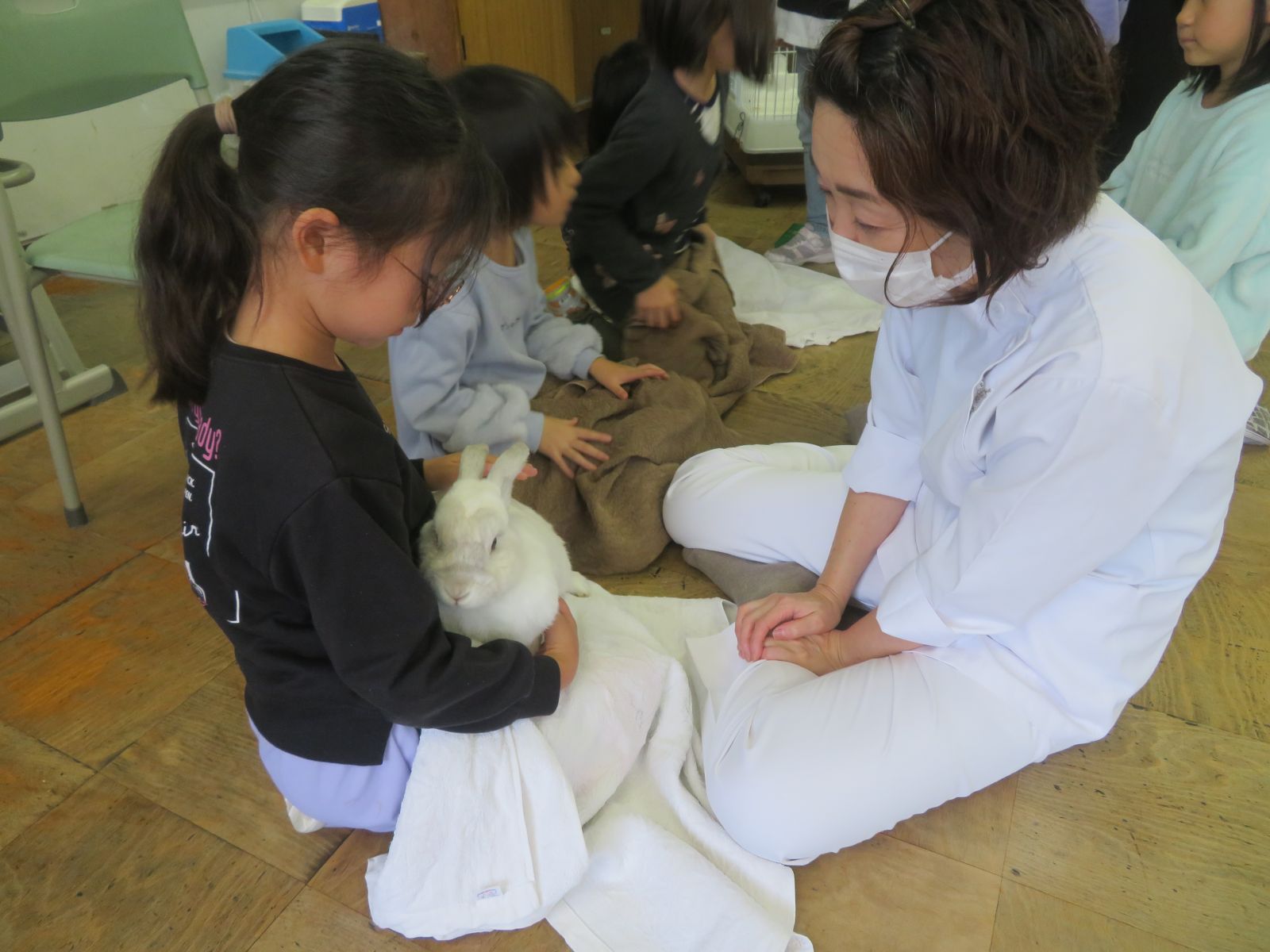 学校獣医師さんにお越しいただき、適正飼育管理指導とふれあい指導を行いました。