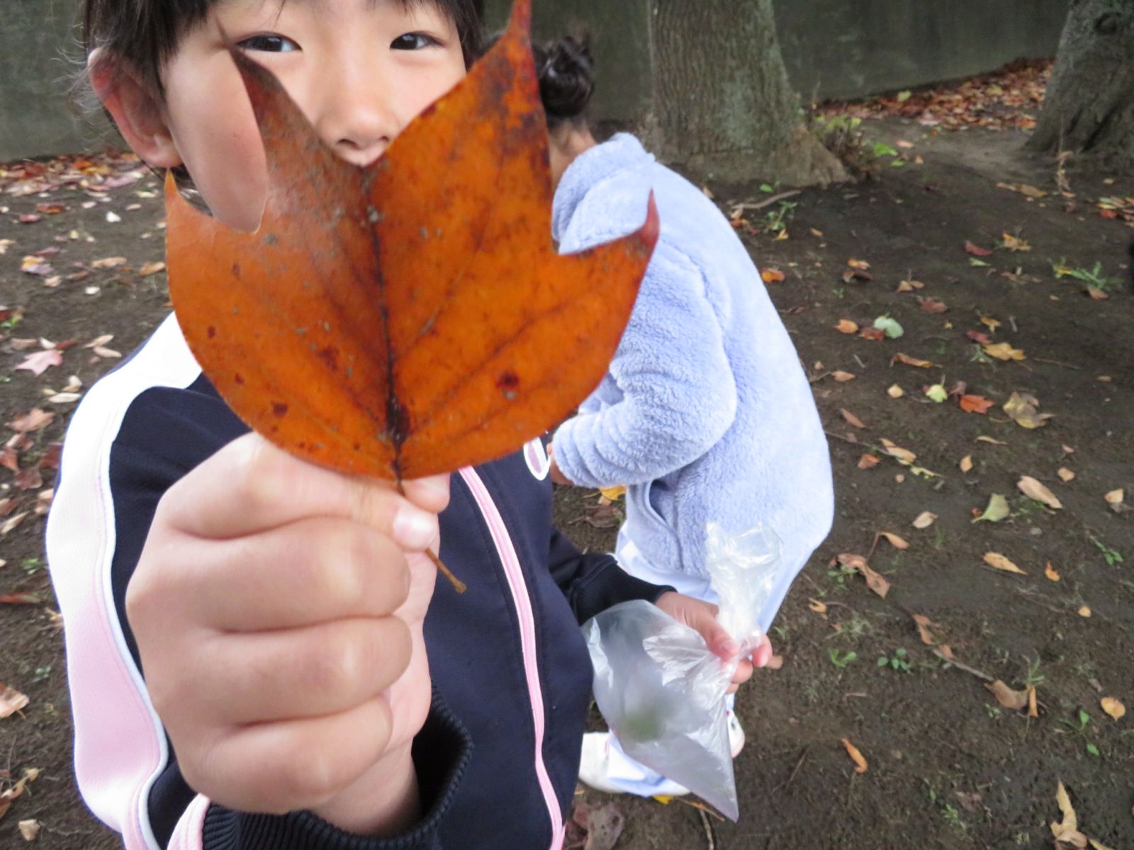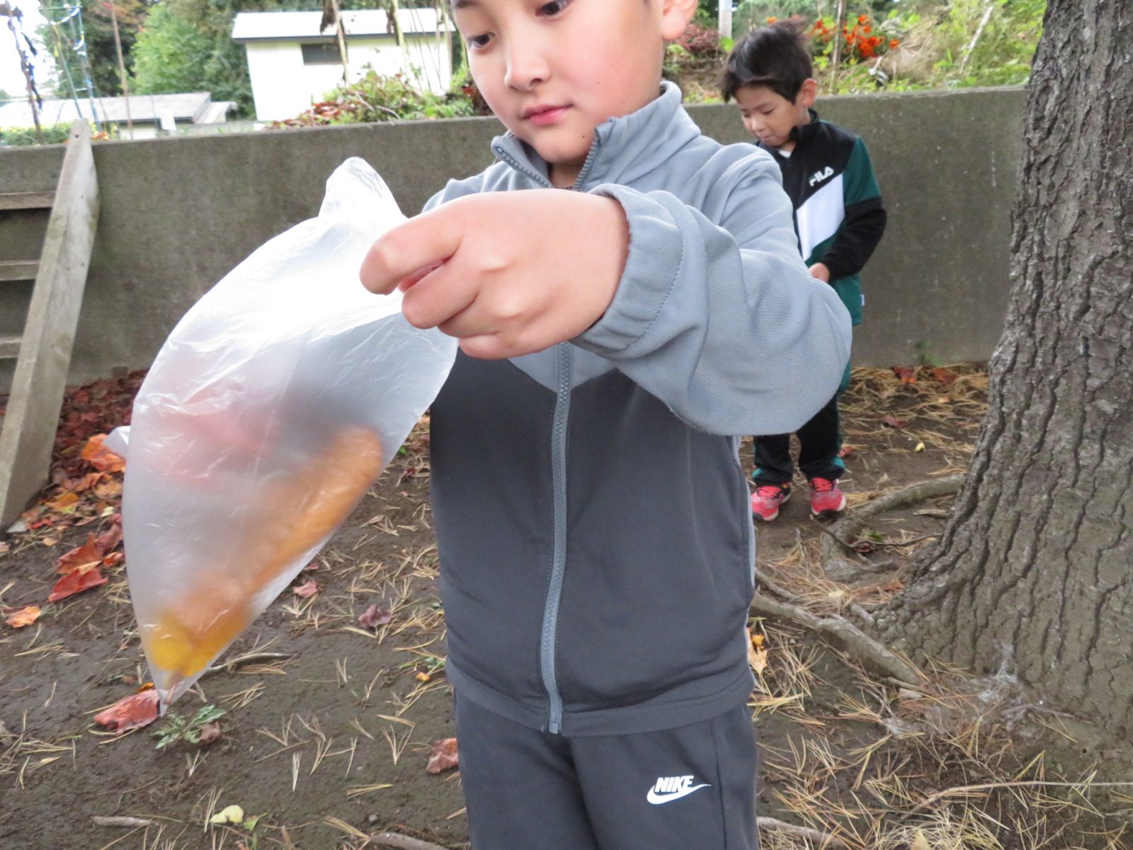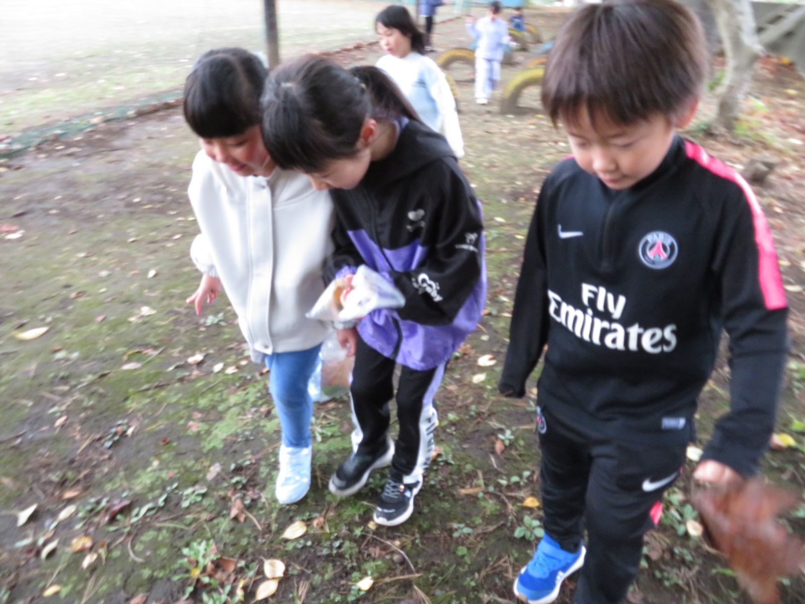 を集めています。とてもきれいな落ち葉や大きな松ぼっくりもありますね。今日はだいぶ肌寒い日となっていますが,子どもたちは元気いっぱいに活動していました。