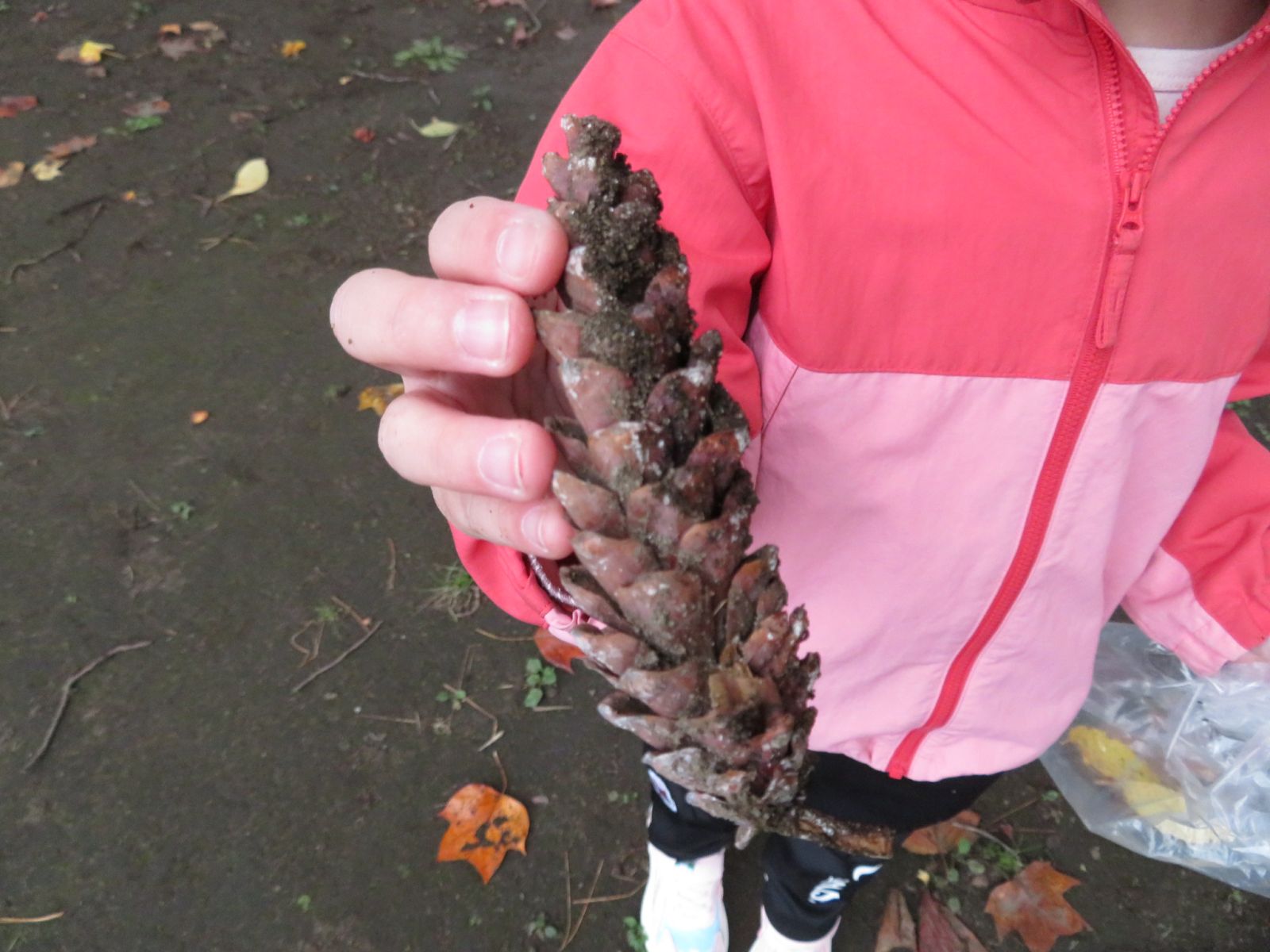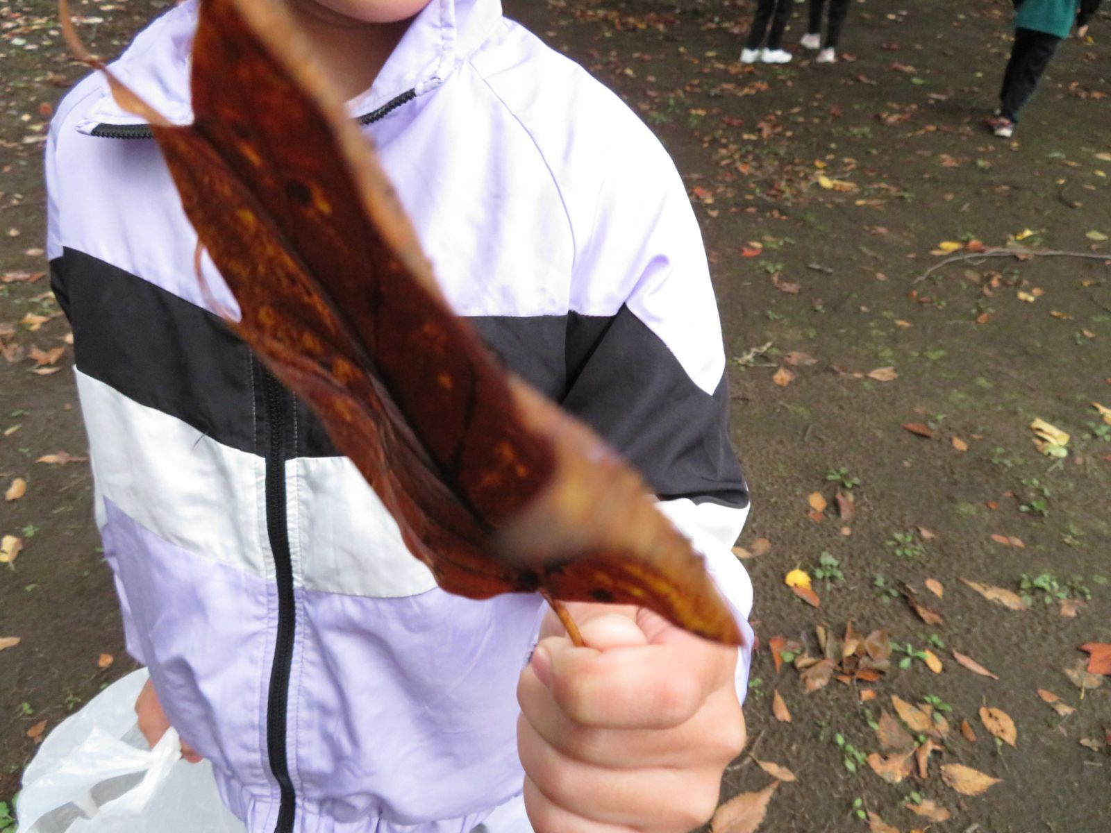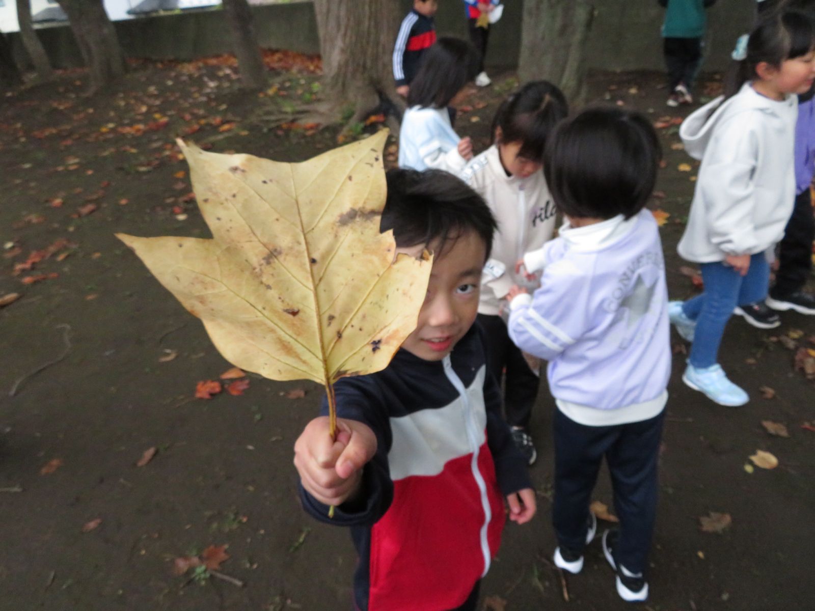 を集めています。とてもきれいな落ち葉や大きな松ぼっくりもありますね。今日はだいぶ肌寒い日となっていますが,子どもたちは元気いっぱいに活動していました。