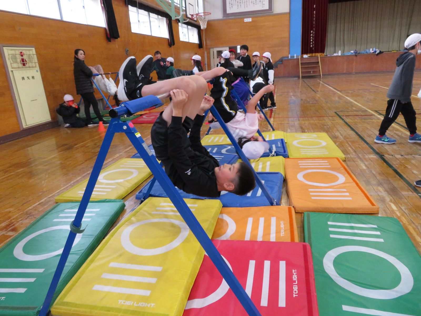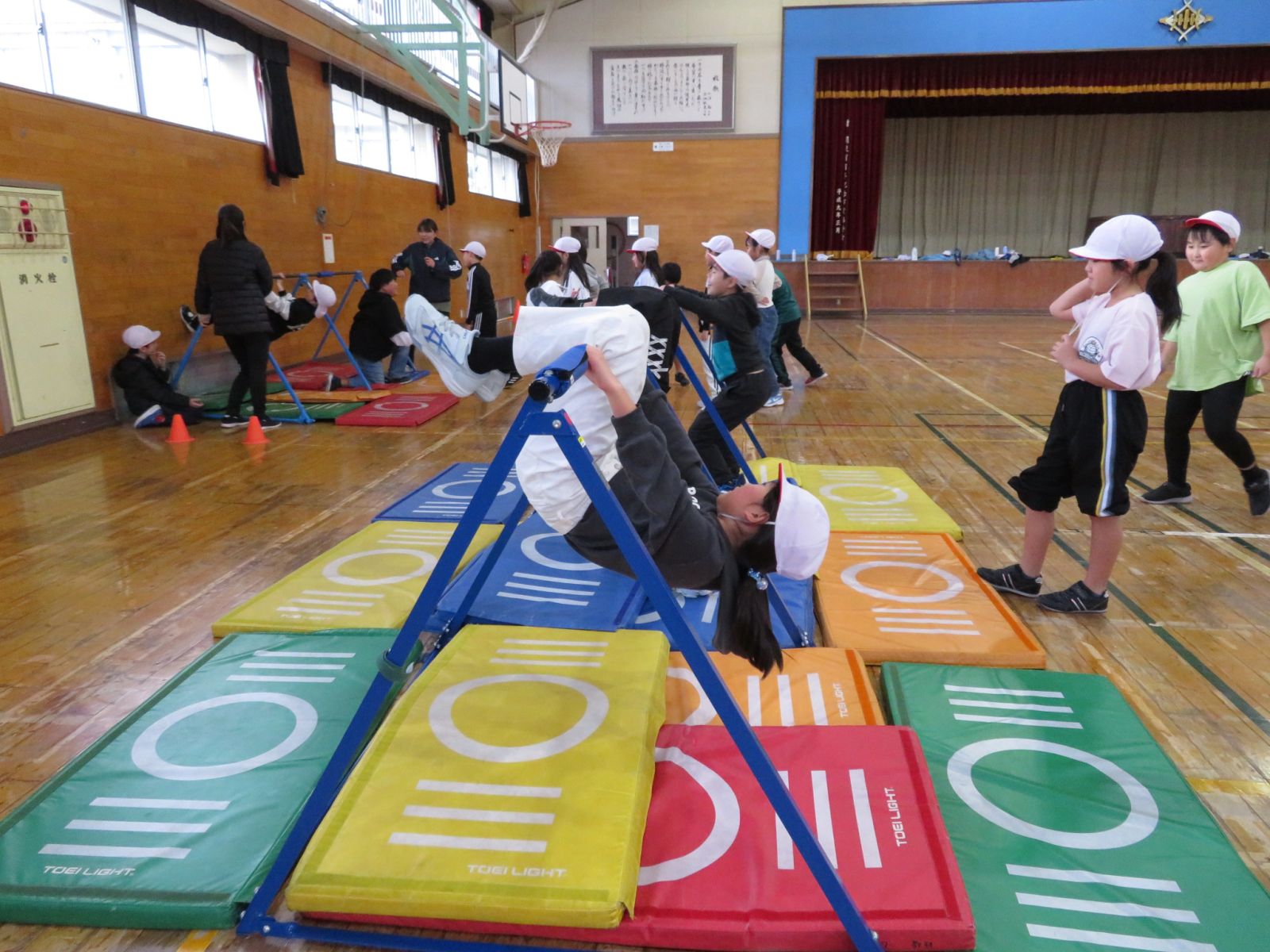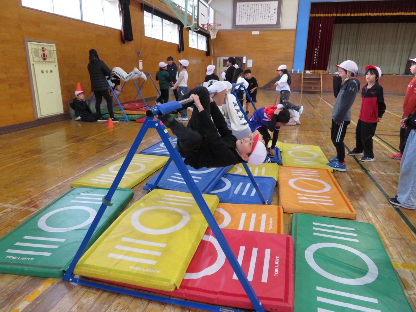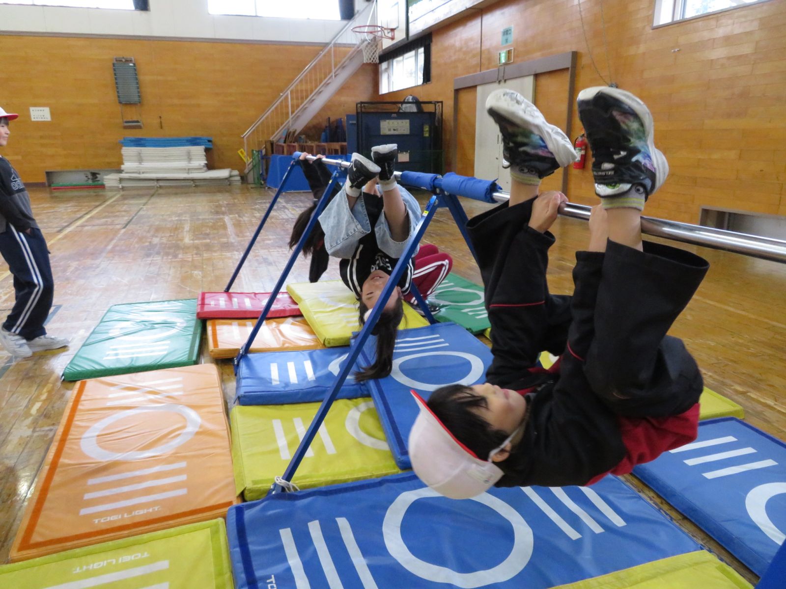 のいろいろな技に挑戦している子が多く見られました。現在,体育館に鉄棒が設置されており多くの学年で