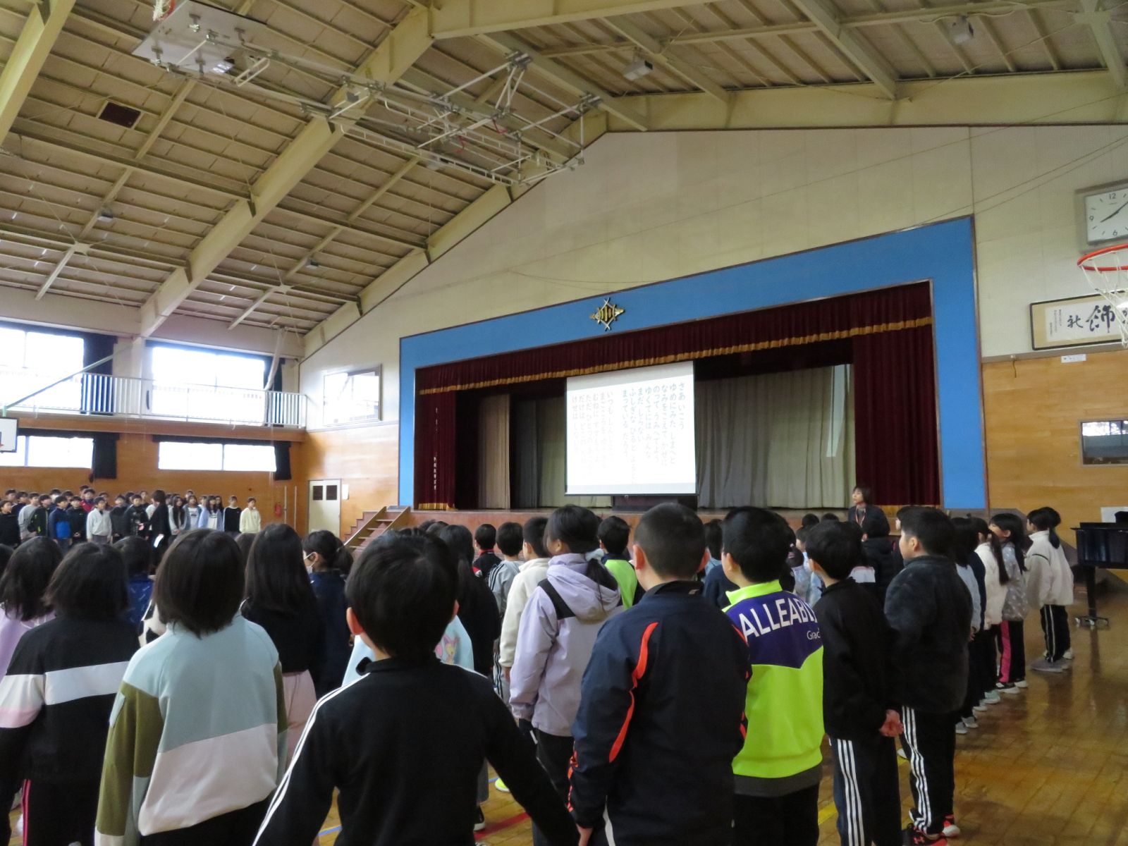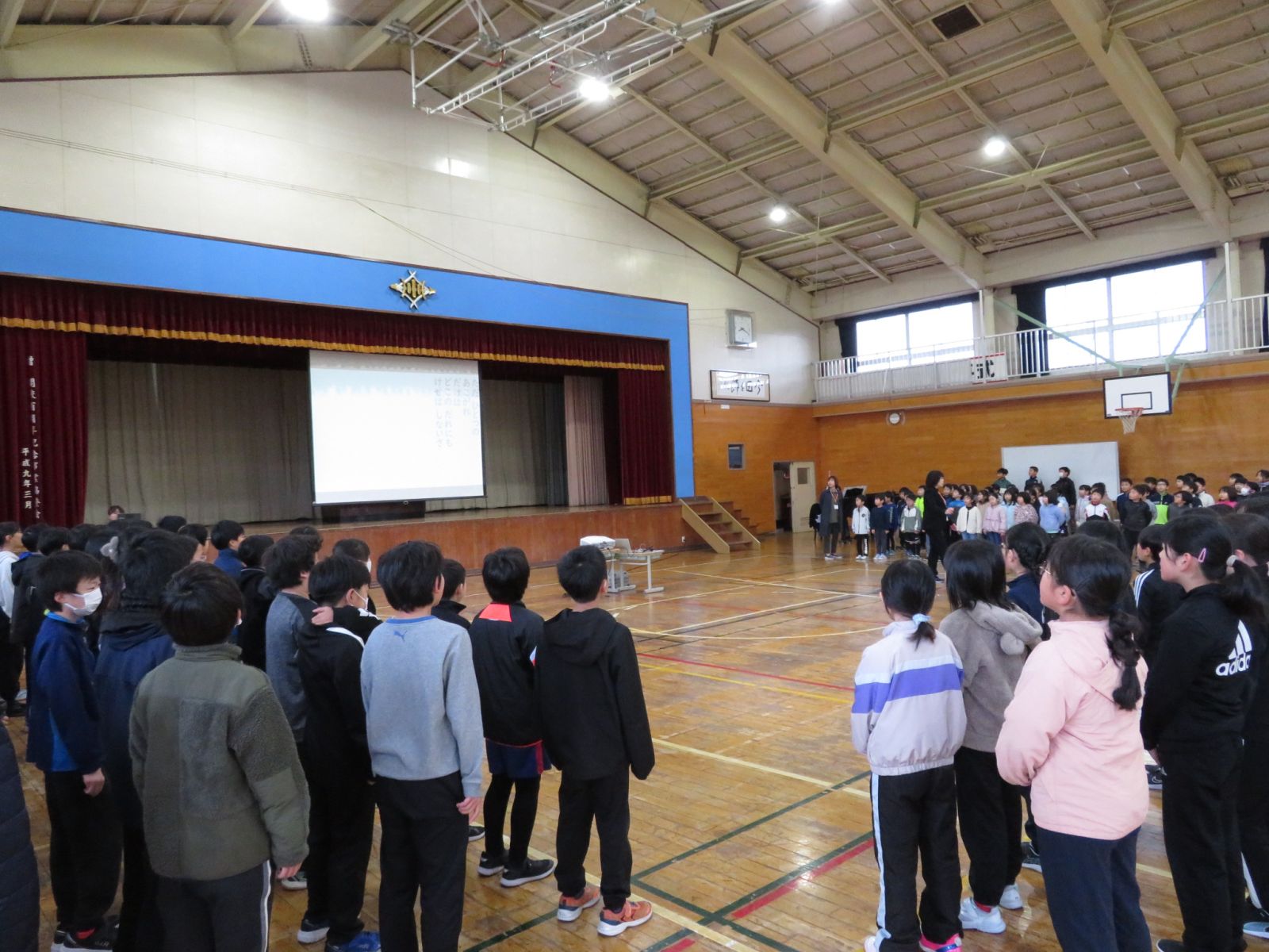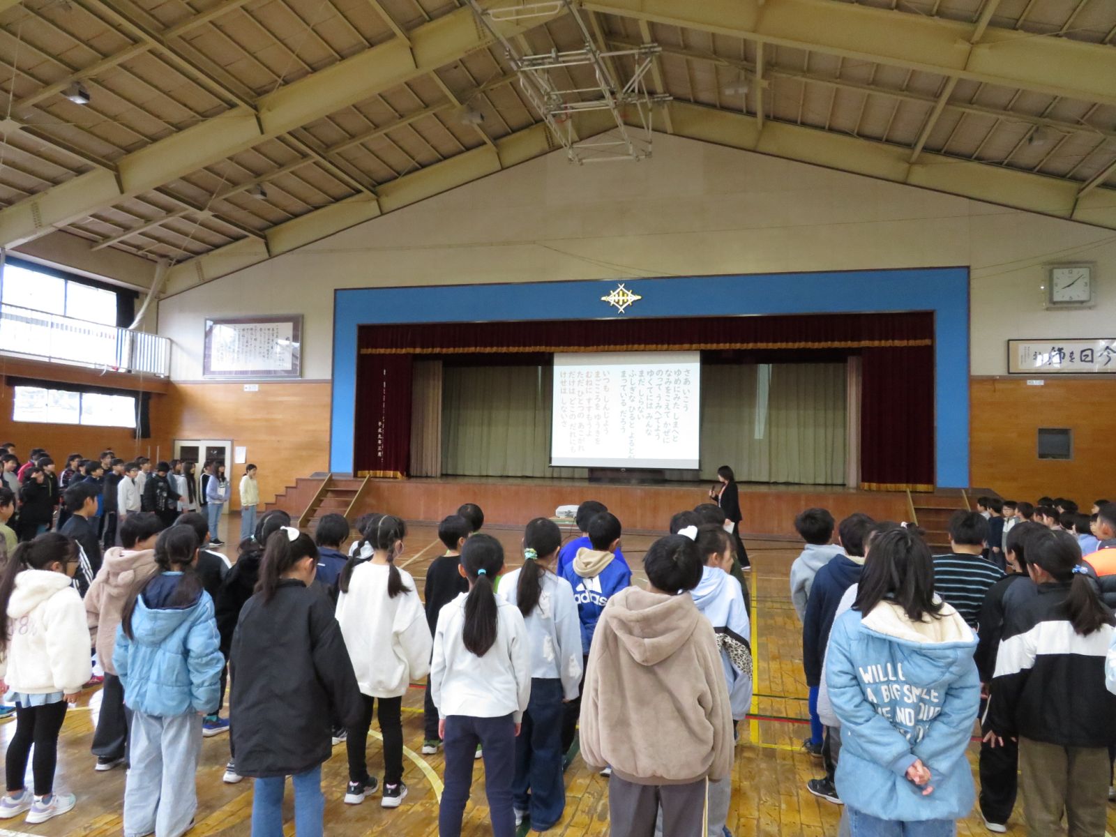 を合唱しました。伸びやかな子どもたちの声からいろいろな表現力を感じます。すてきな歌声が体育館いっぱいに広がりました。