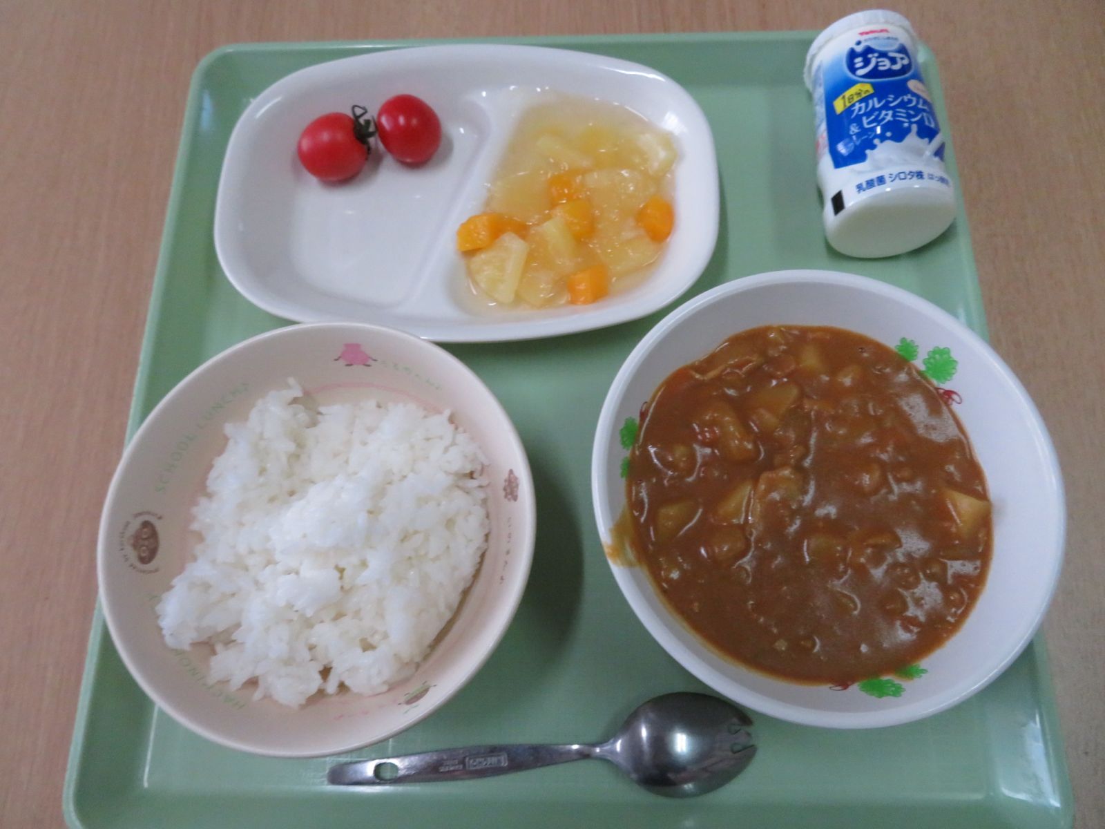 チキンカレー,ジョア,ゼリー入りフルーツポンチ,ミニトマト