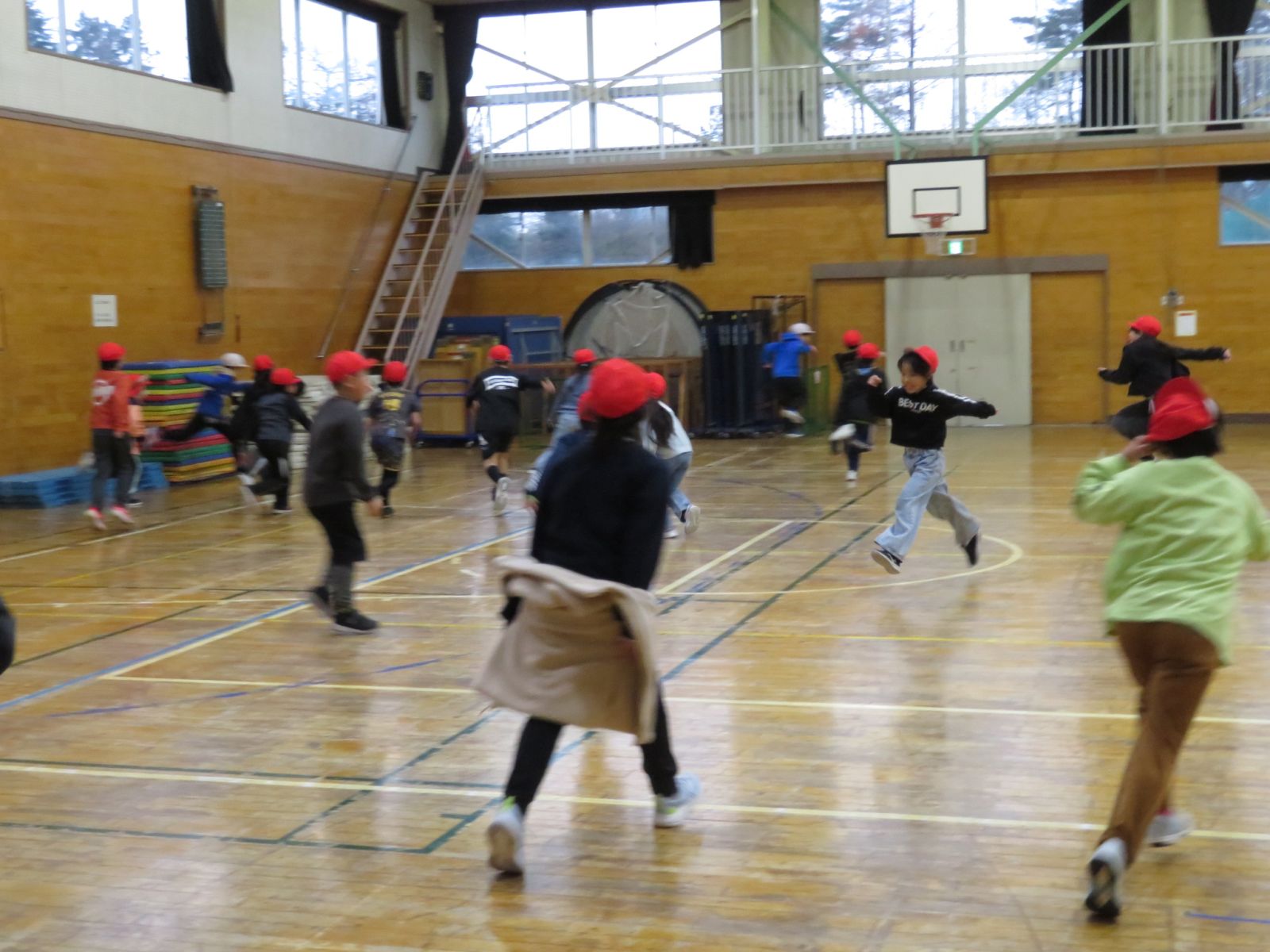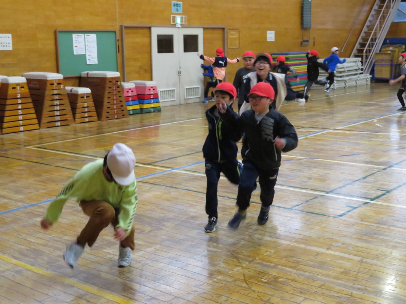 に生き生きと取り組んでいます。「1,2,3,4,5!」のかけ声に合わせて逃げたり追いかけたりしています。楽しみながら体をいっぱい動かしていました。