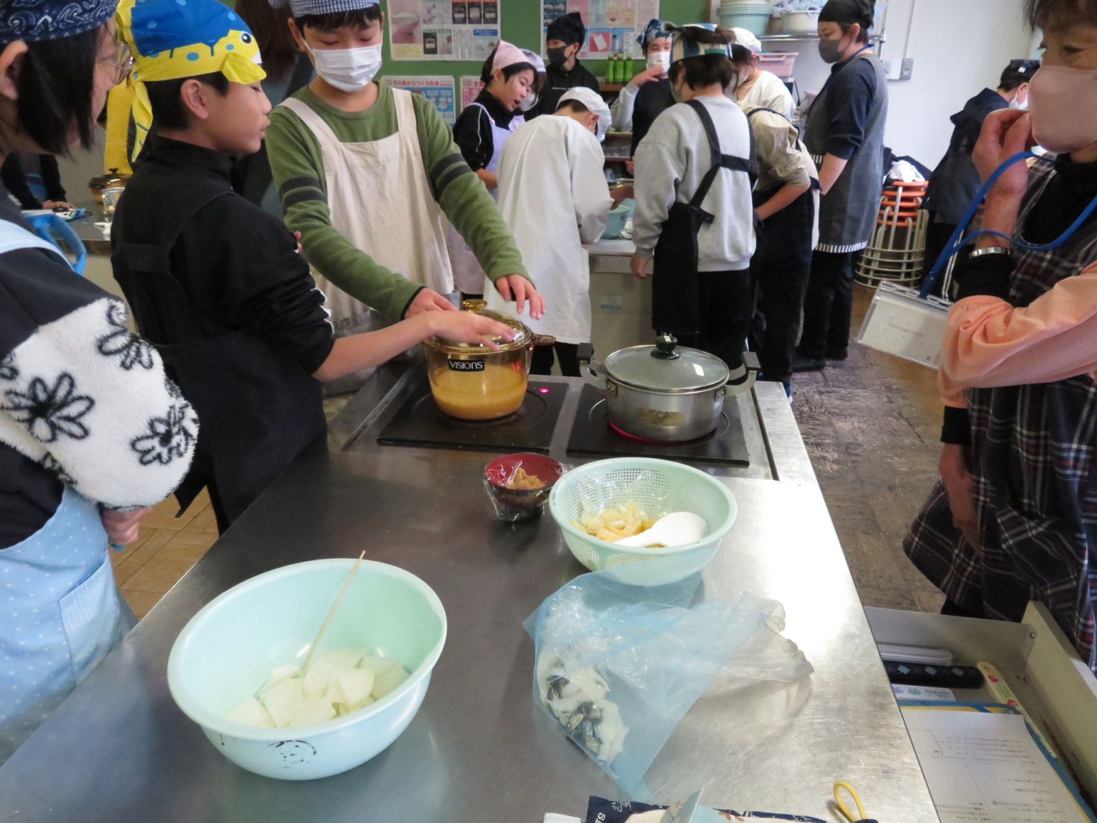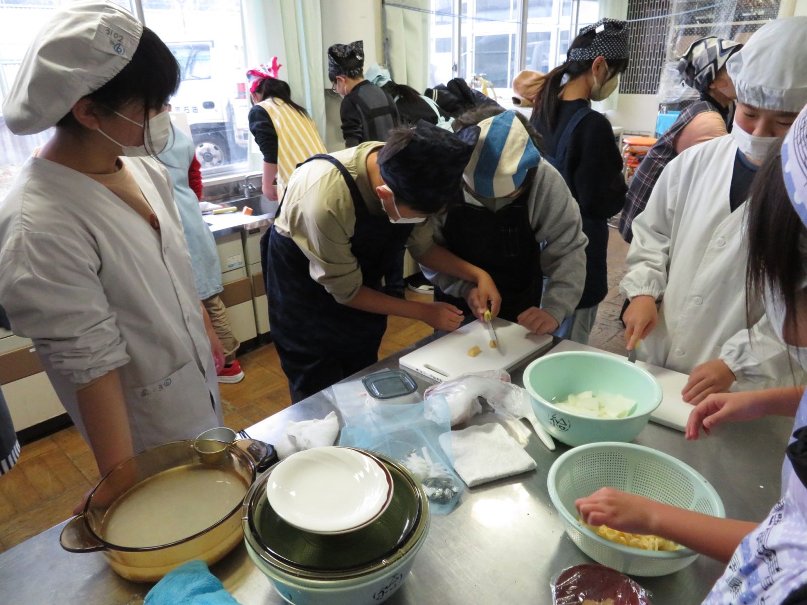 をつくっています。とても手際がいいですね。今回の調理実習でも多くの教育ボランティアの皆さまからご協力をいただきました。お忙しい中,本当にありがとうございました。