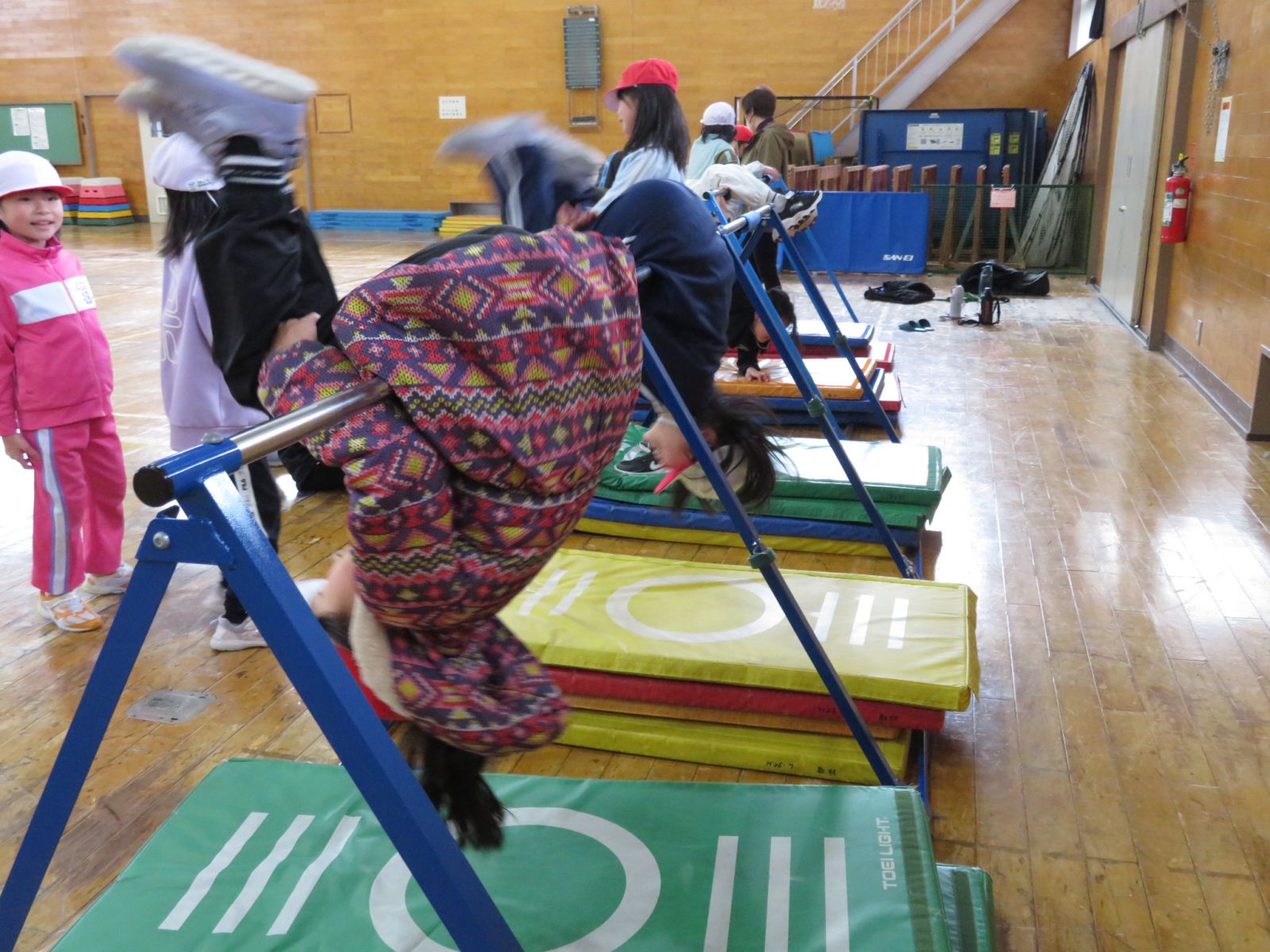 鉄棒もがんばっています。ブルンブルン勢いよくまわっています。