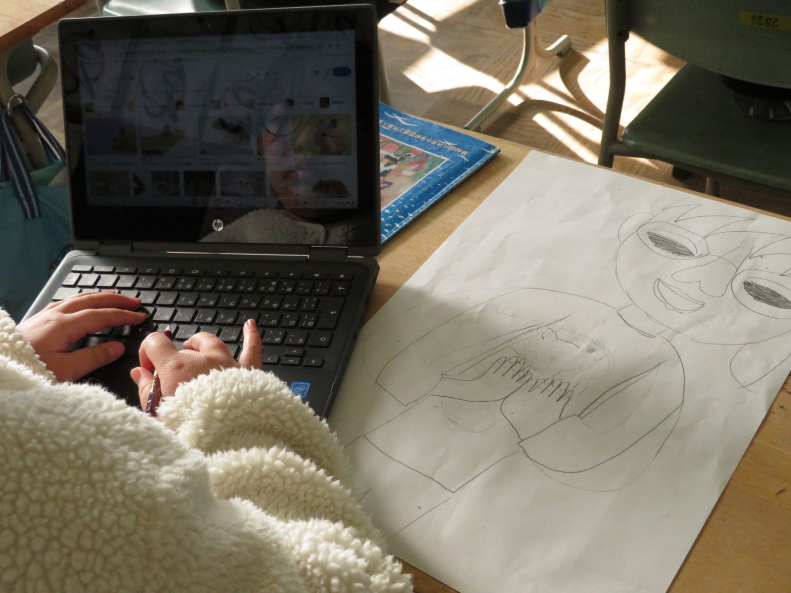 をかいています。ダイナミックな構図で,ていねいにていねいにかいています。完成が楽しみです。