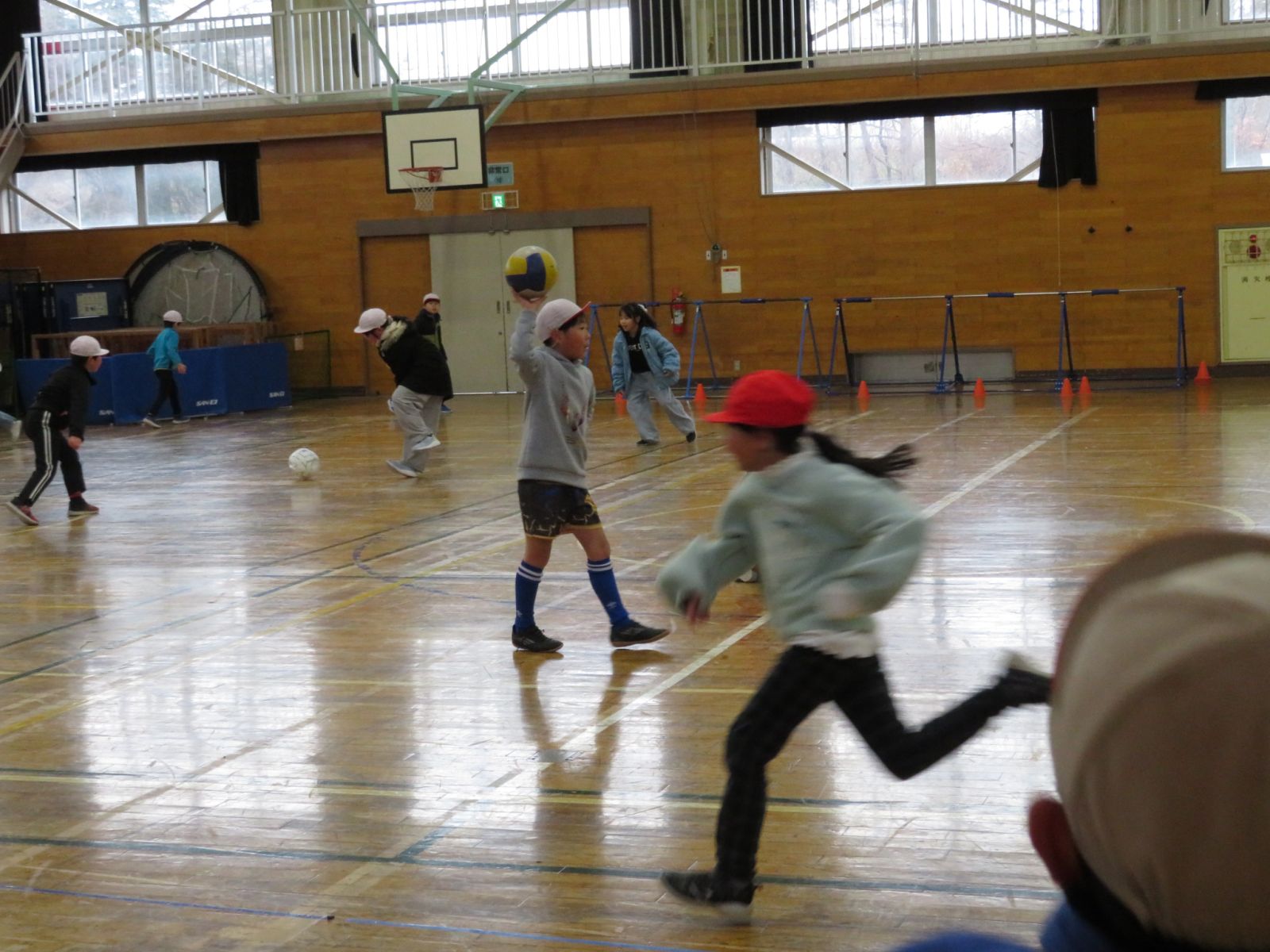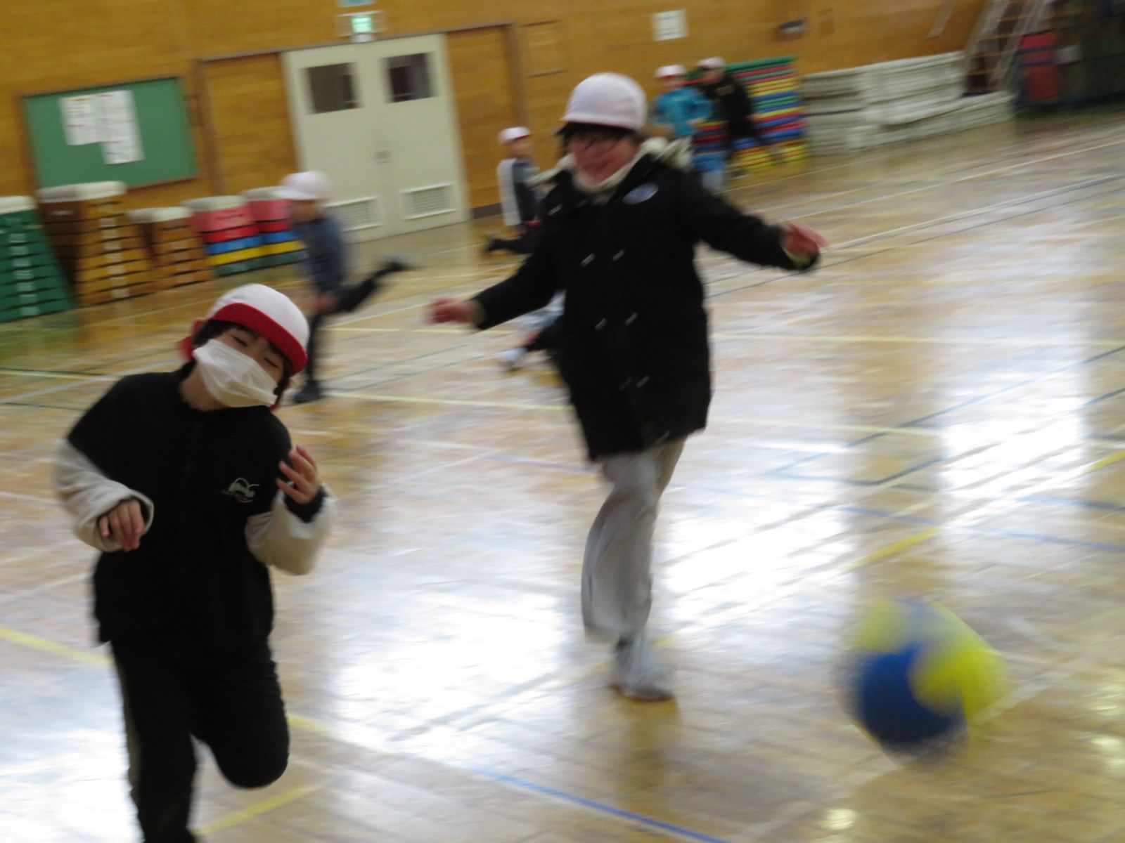 をして体育館を走り回っています。外はあいにくの雨ですが体育館の中は3年生の元気な声がいっぱいでした。