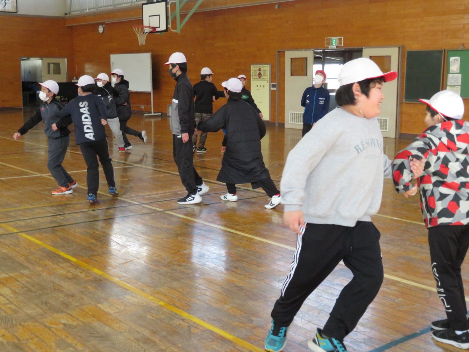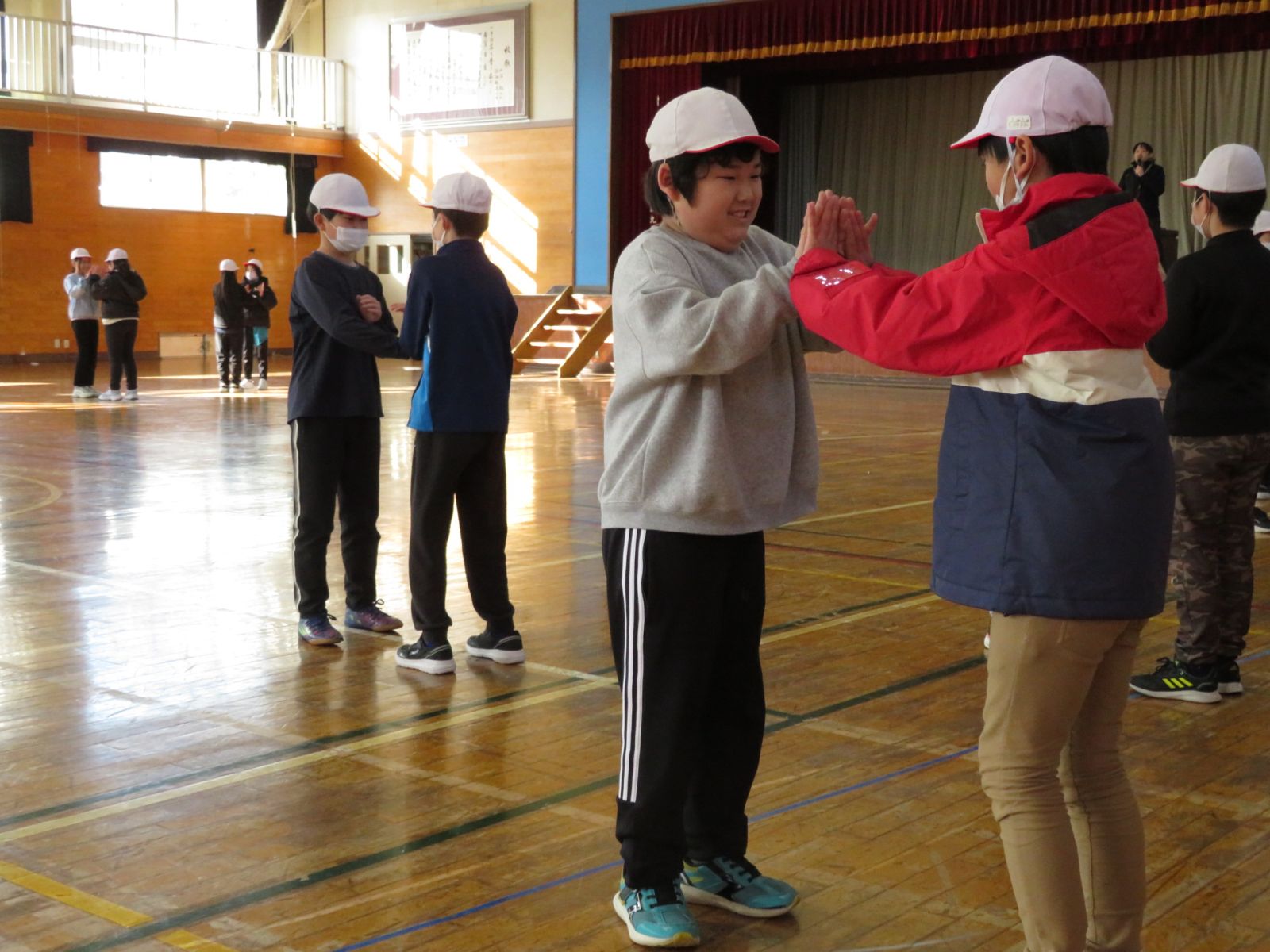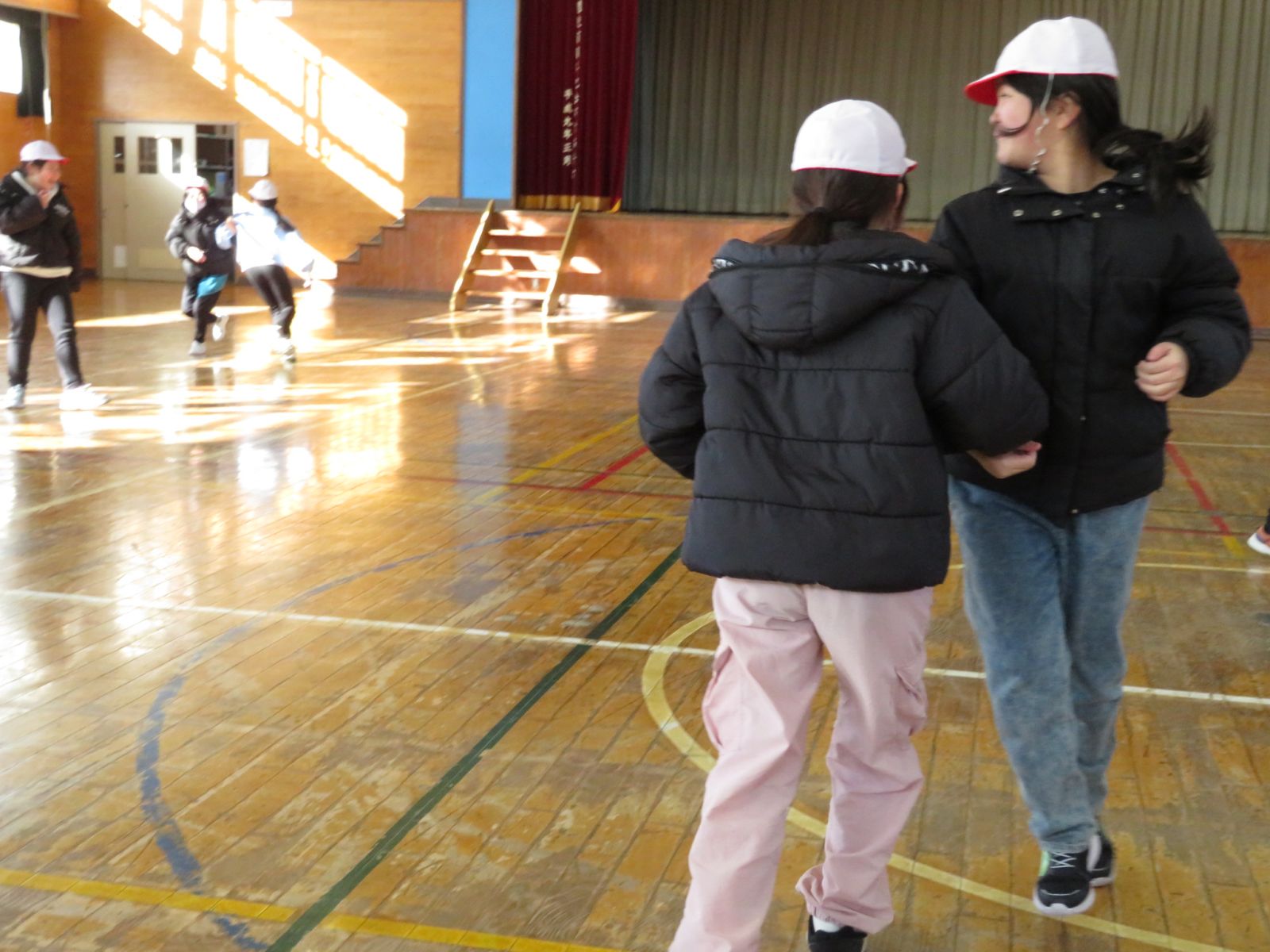 の音楽に合わせ,ペアを交換しながら楽しくダンスを踊っていました。今日は日中もかなり冷え込んでいましたが,体育館の中は子どもたちの笑顔でいっぱいでした。
