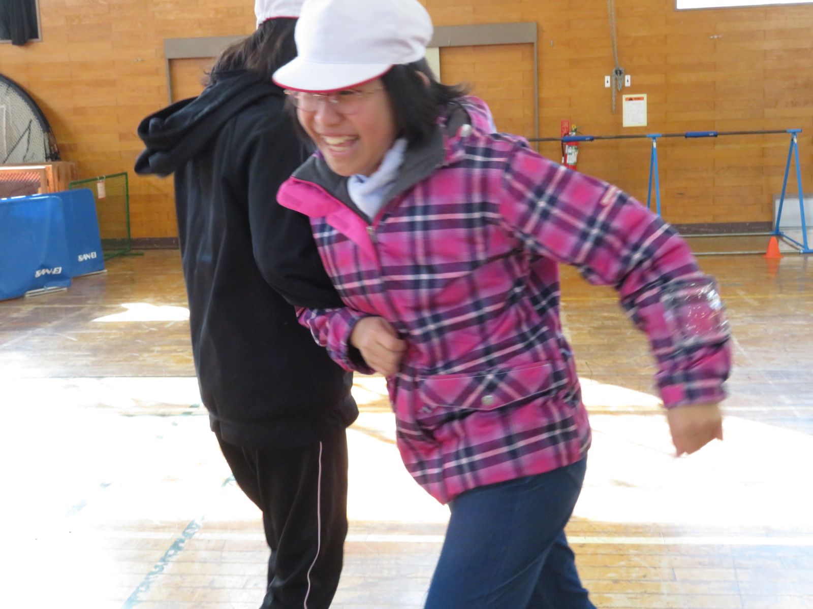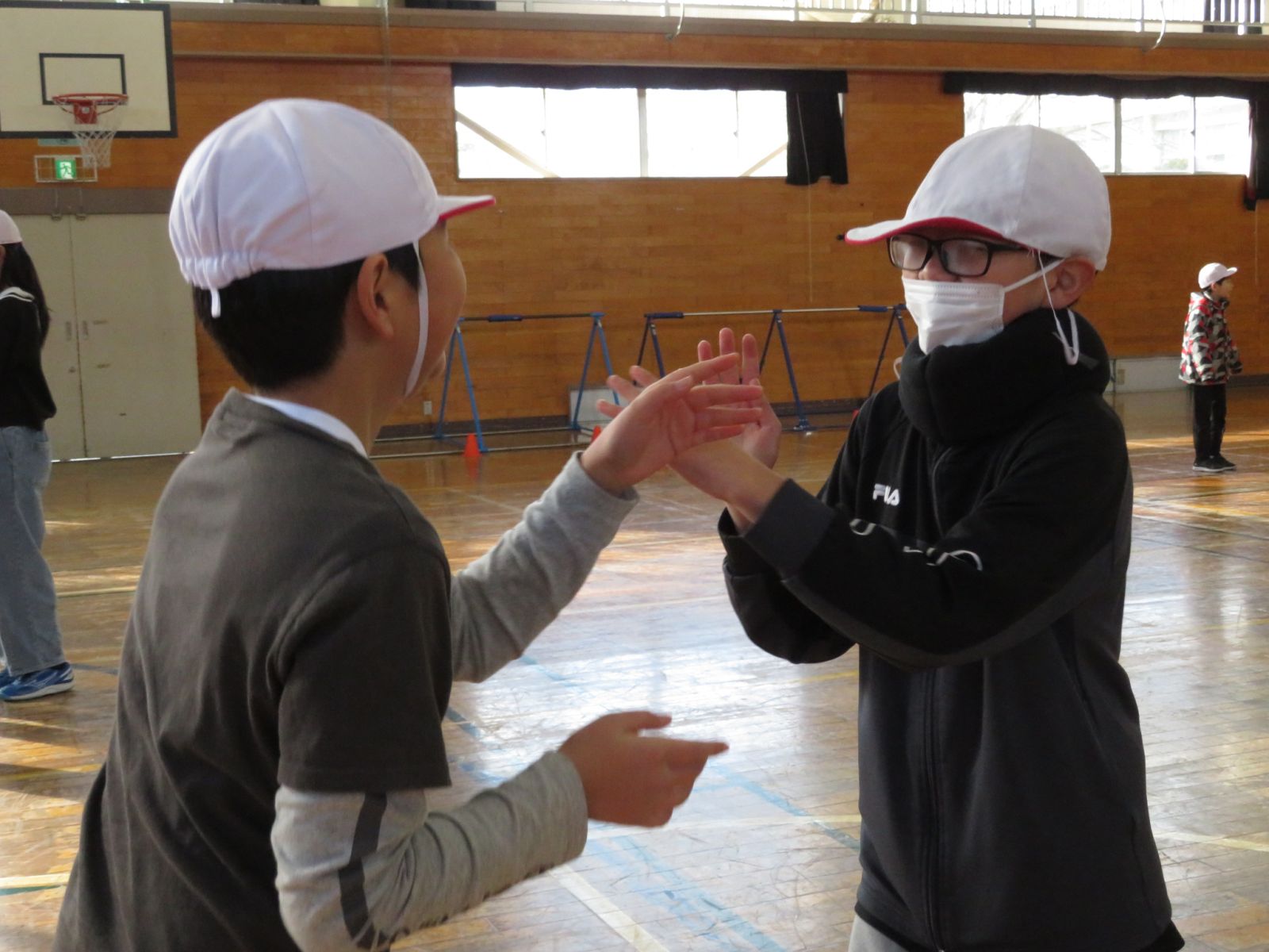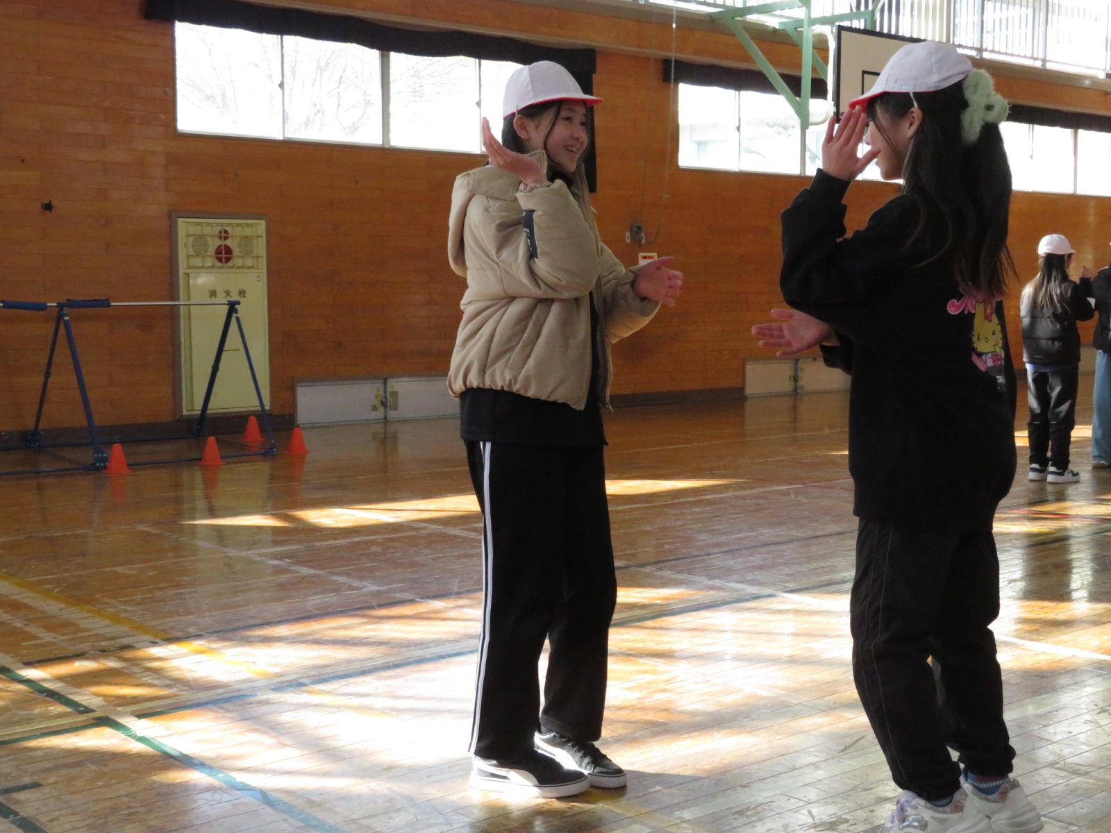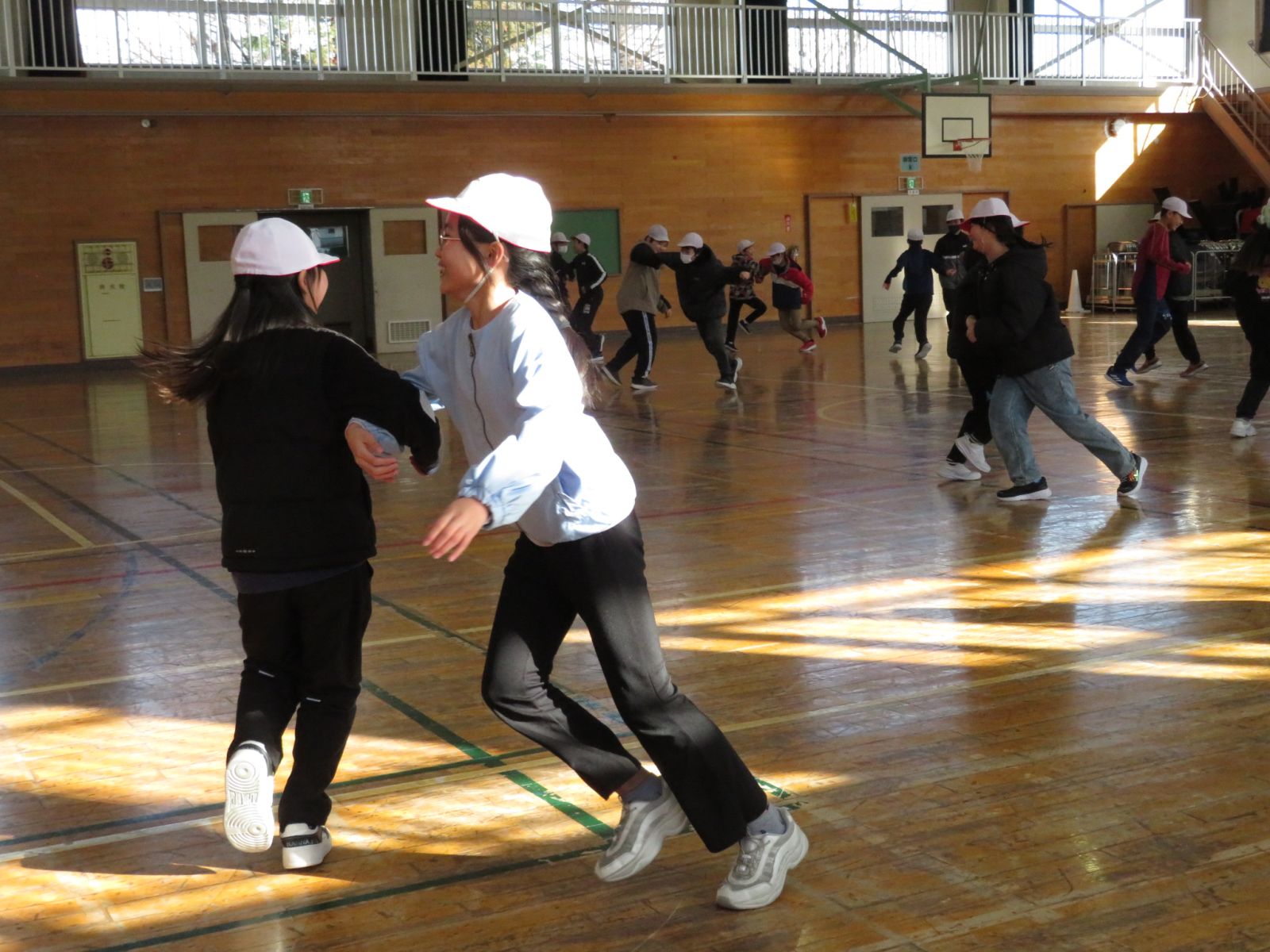 の音楽に合わせ,ペアを交換しながら楽しくダンスを踊っていました。今日は日中もかなり冷え込んでいましたが,体育館の中は子どもたちの笑顔でいっぱいでした。