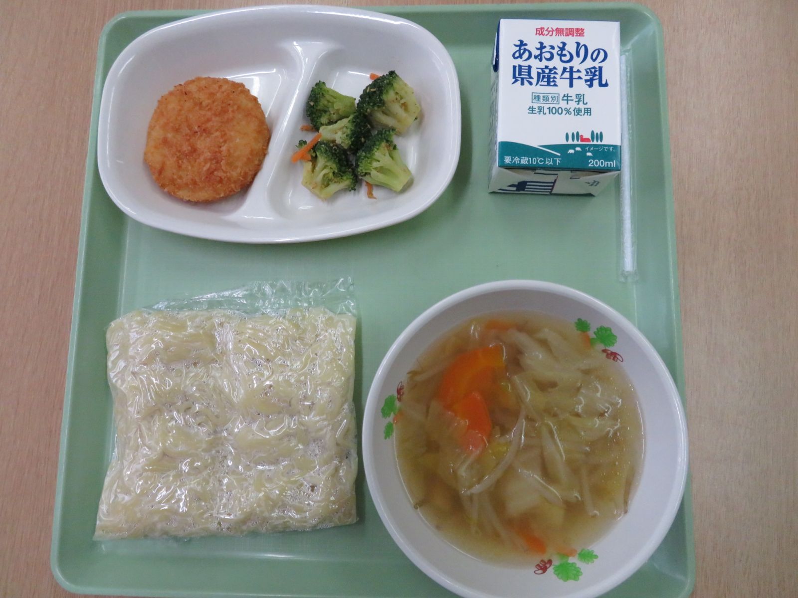 タンメン,牛乳,コロッケ,ブロッコリーの胡麻和え