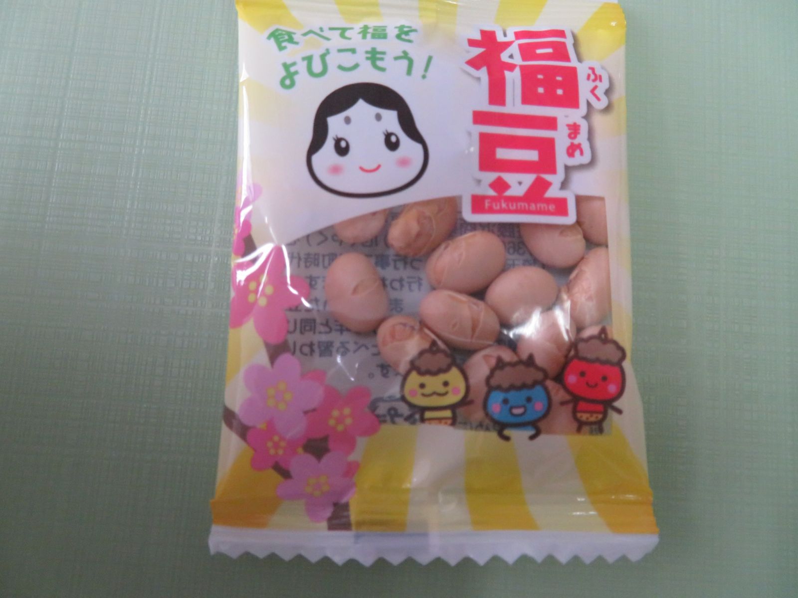 明日は節分。給食にも節分豆がつきました。
