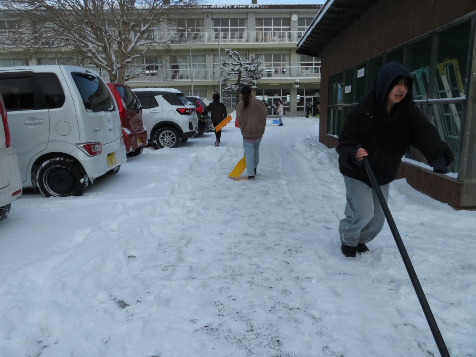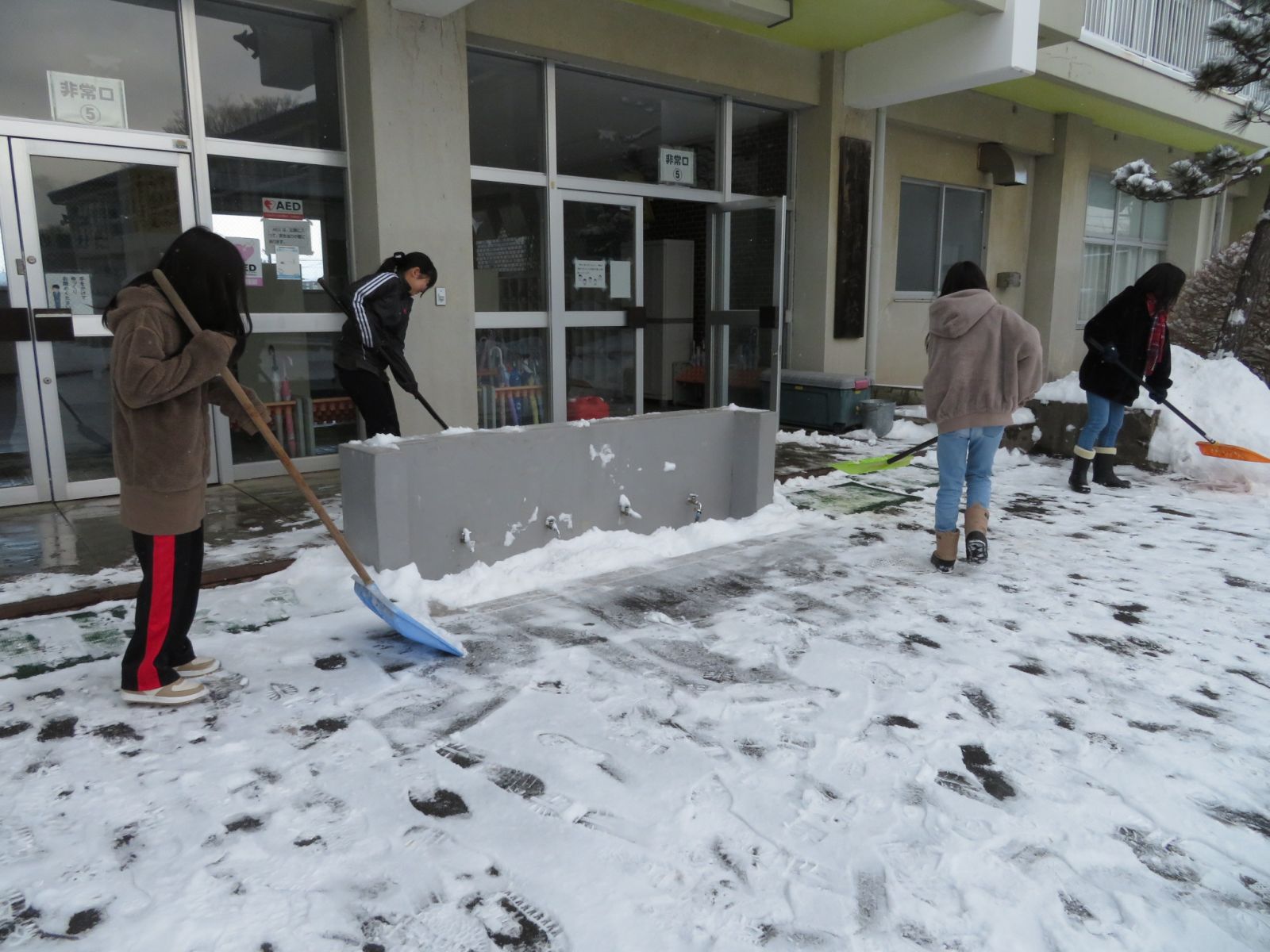 を頑張ってくれました。6年生が力を合わせて,今朝積もった雪がどんどんなくなっていきます。全校のために,本当によく働いてくれるすばらしい6年生の皆さんです。