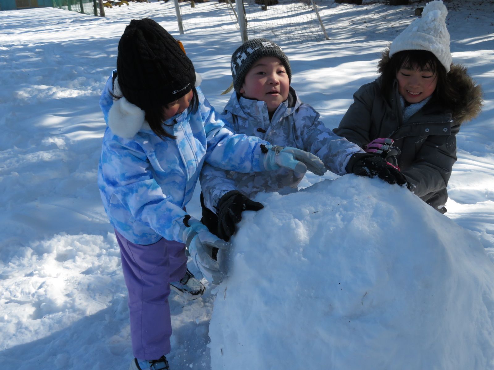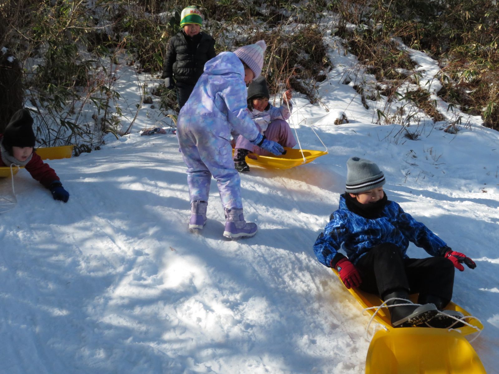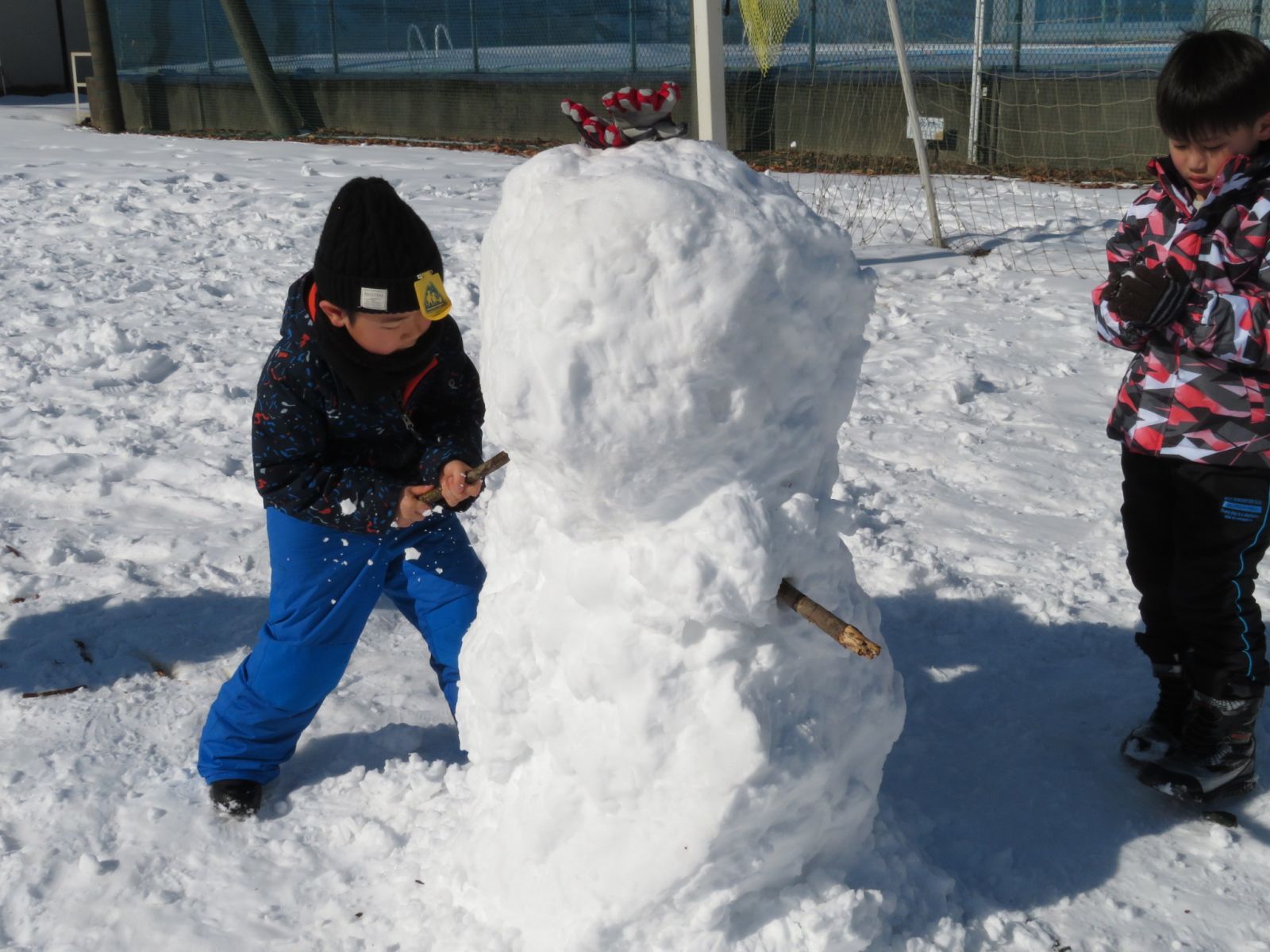 3時間目の1年生の様子です。昨日の雪がたくさん残っていて子どもたちは大喜びです。雪だるまをつくったり,そりに乗ったりしてとても楽しく体を動かしています。雪が降ると校庭がとても楽しい場所になりますね。