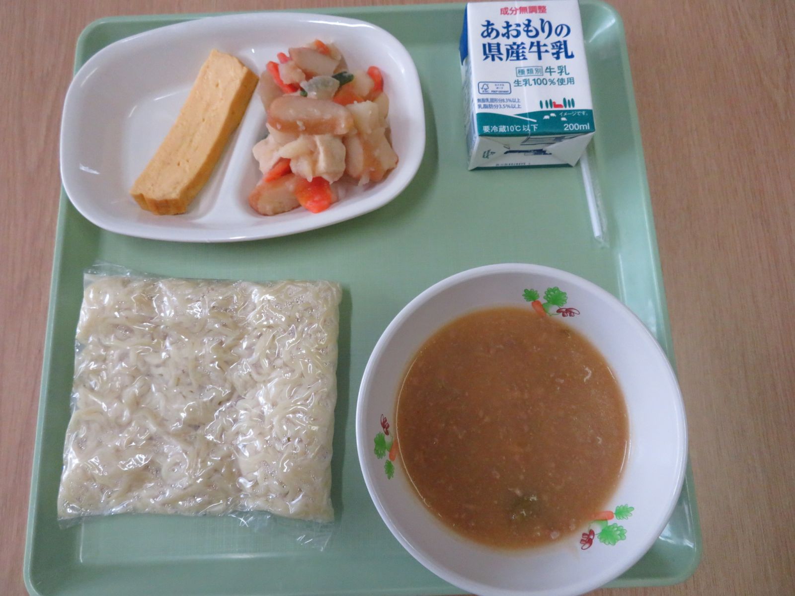 じゃじゃ麺,牛乳,やさいのうま煮,厚焼きたまご