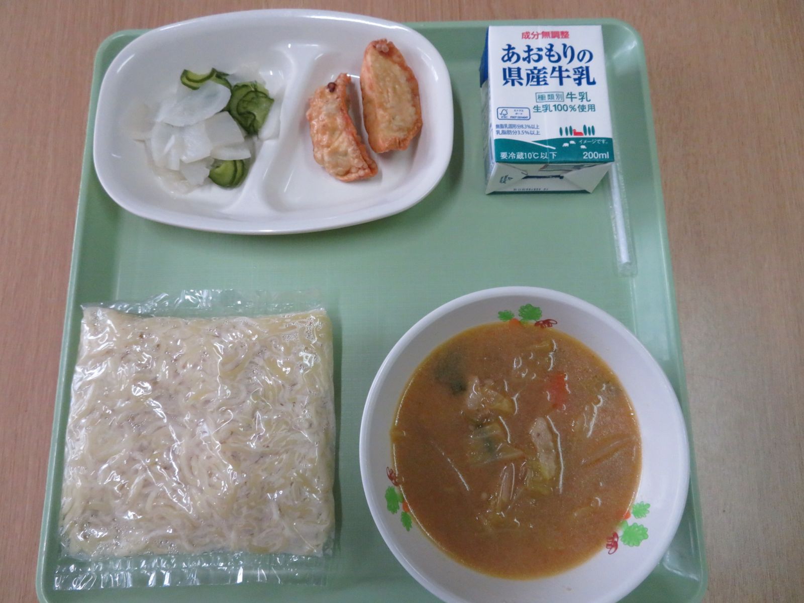 味噌ラーメン,牛乳,揚げギョウザ,カブとキュウリのだしず和え
