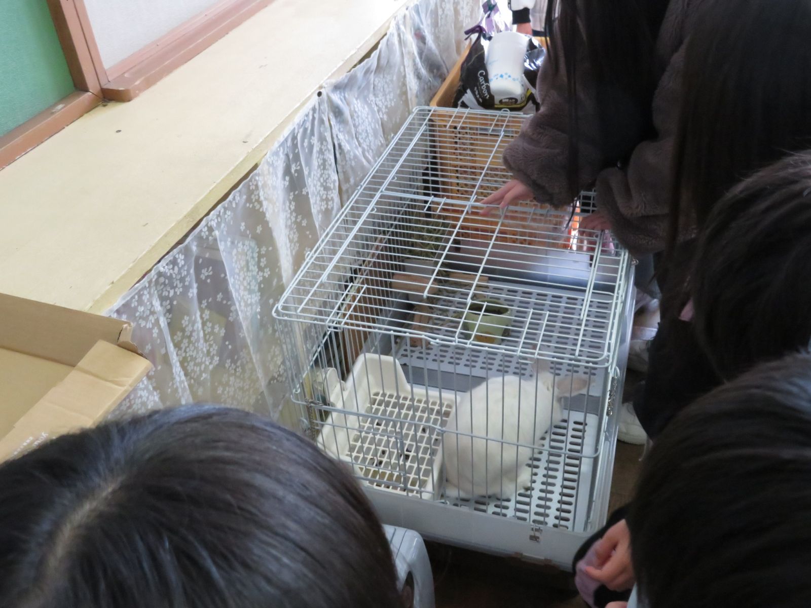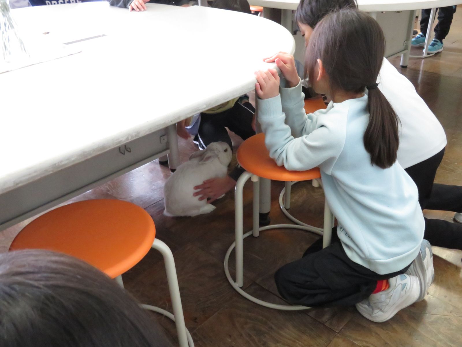 お昼休みの様子です。ウサギの大福との