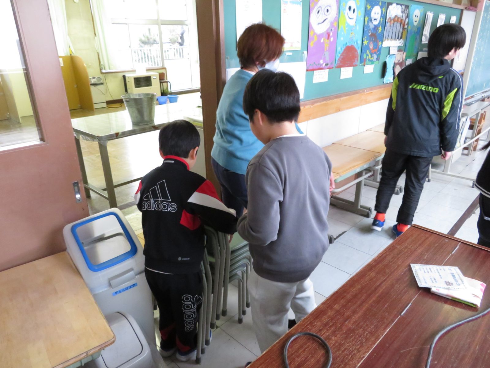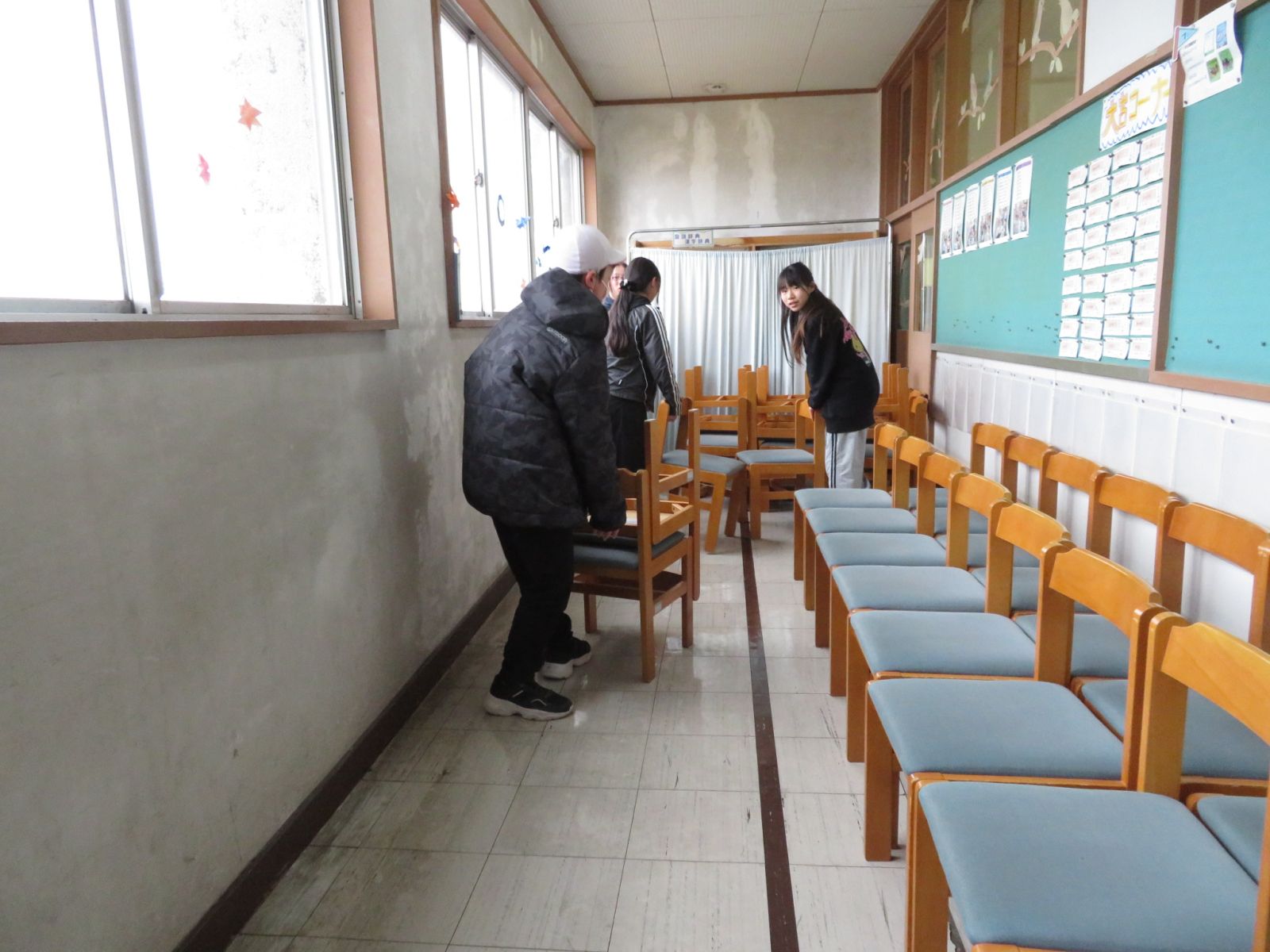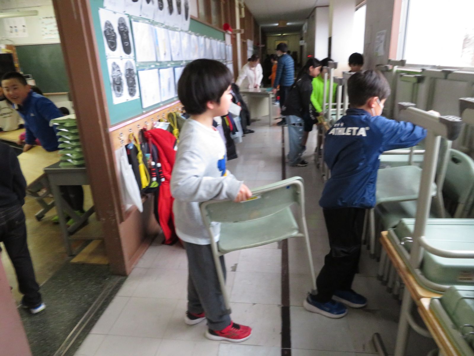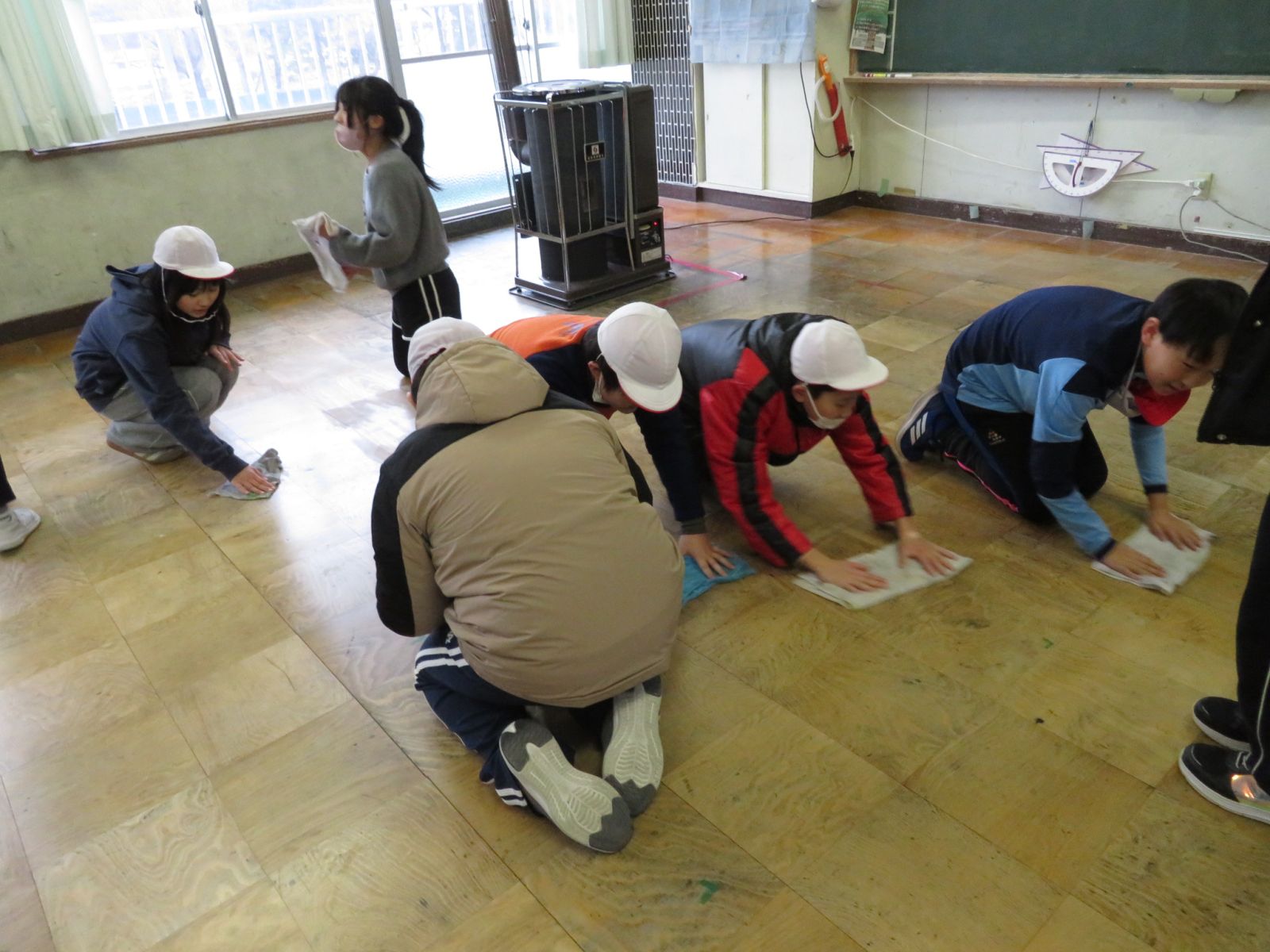 の様子です。教室や特別教室にあるものを廊下へ出して中をきれいに掃除しています。もうすぐこの教室ともお別れになる子も多く,