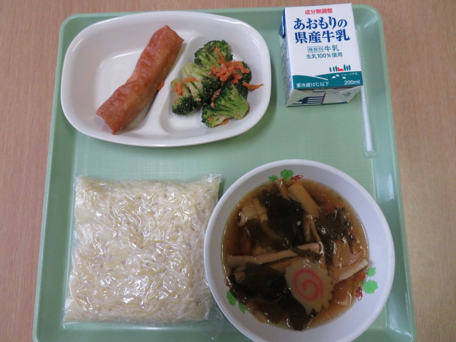 中華そば,牛乳,春巻き,ブロッコリーのごま和え