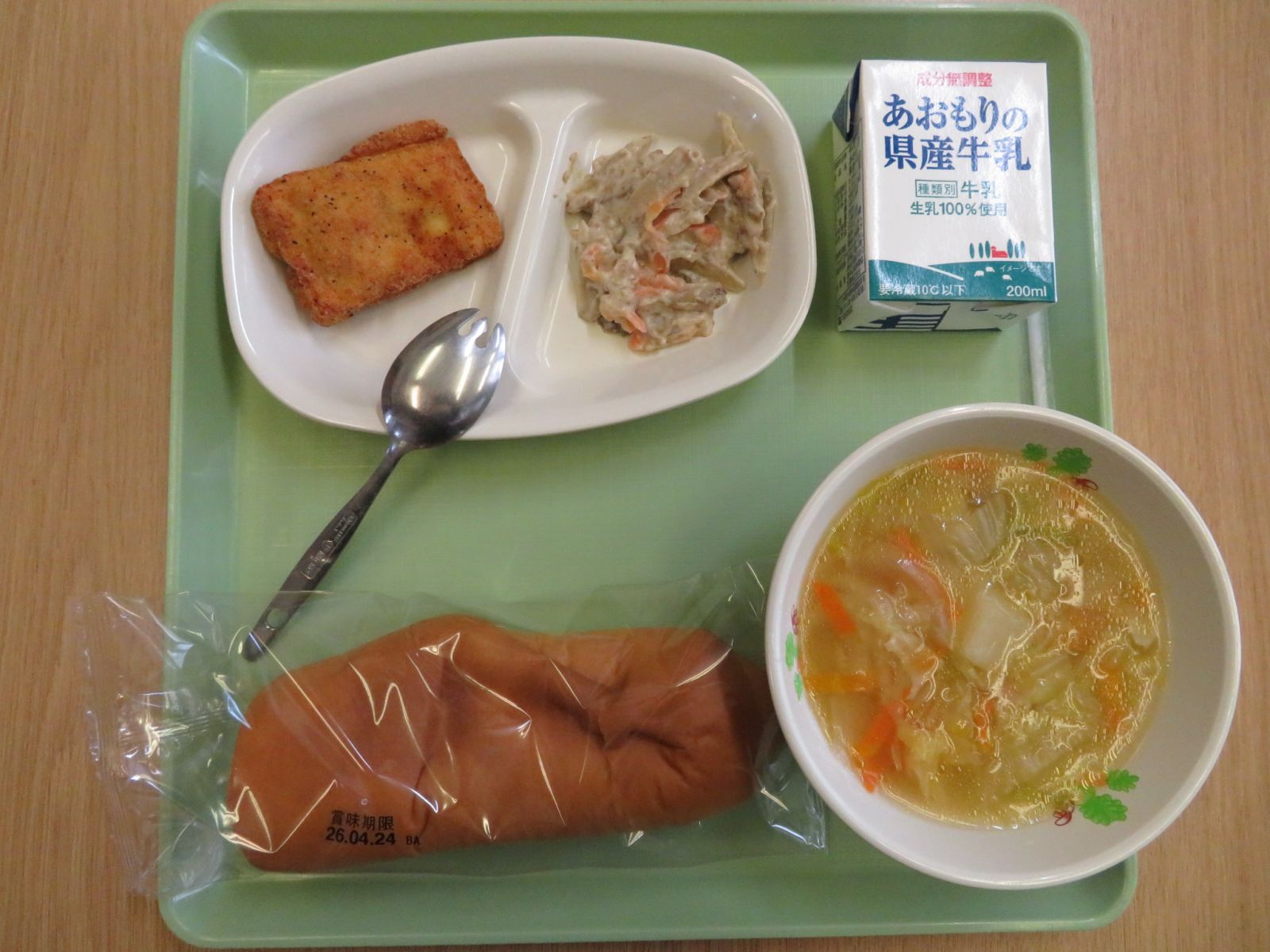 でした。今日は洋風のメニューでした。子どもたちが食に興味をもつように、メニューを工夫してくださっている給食センターの皆様に感謝いたします。