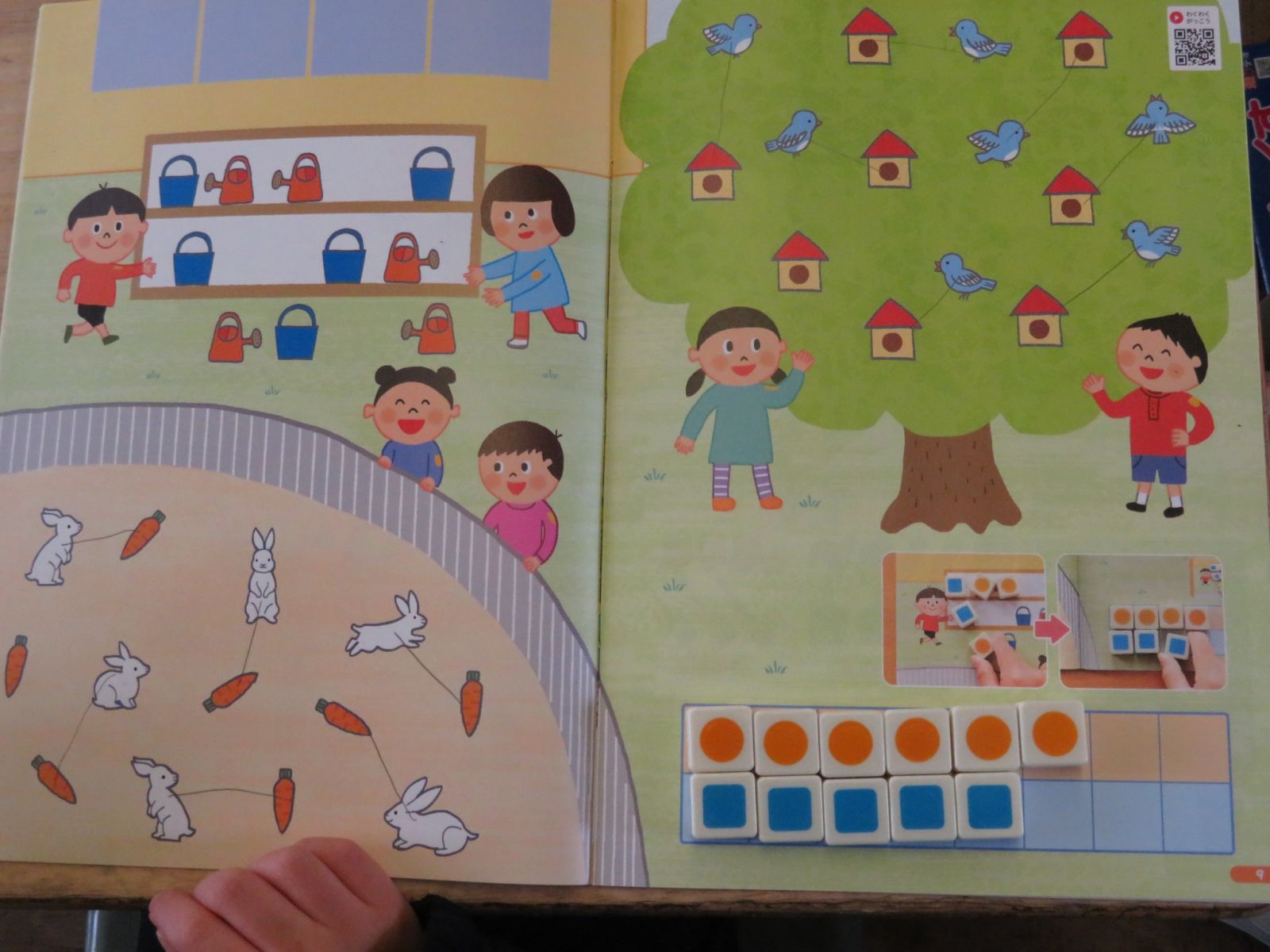 1年生の算数では、数図ブロックを使いながら数の勉強をしていました。