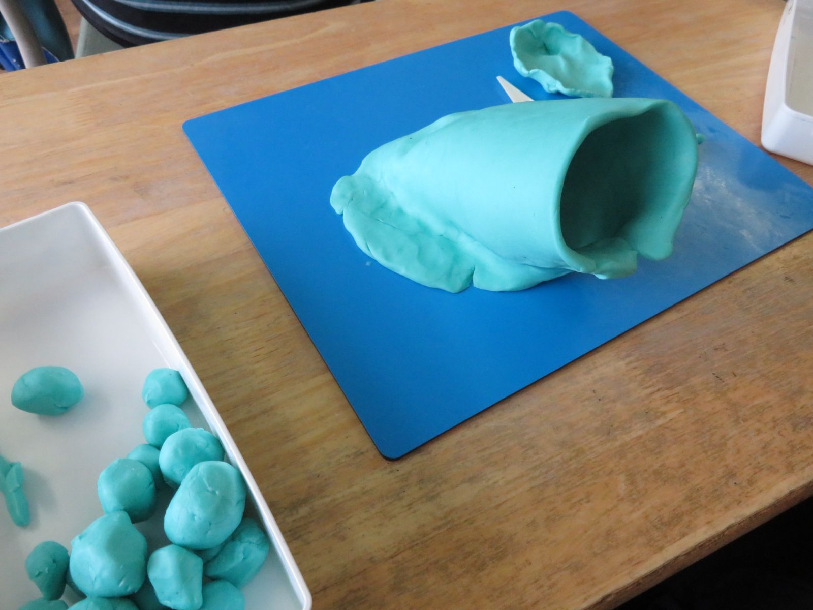 4年生の図工では、板状にした粘土からイメージを広げ、作品作りをしていました。