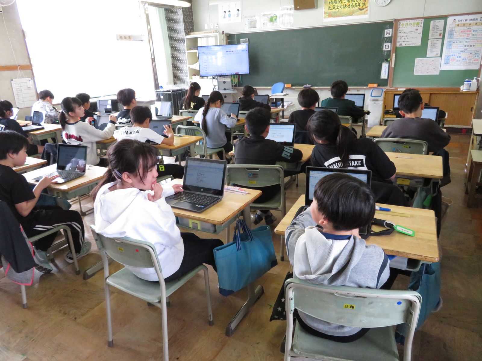 5年生の総合的な学習では、八戸について各自テーマを決めてタブレットを使いながら調べ学習に取り組んでいました。