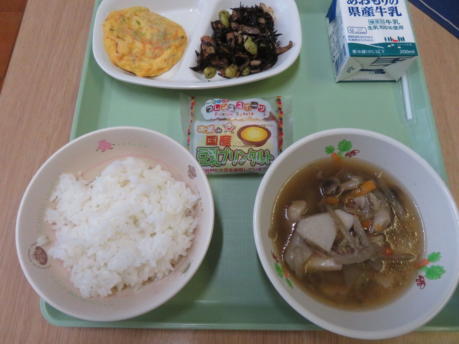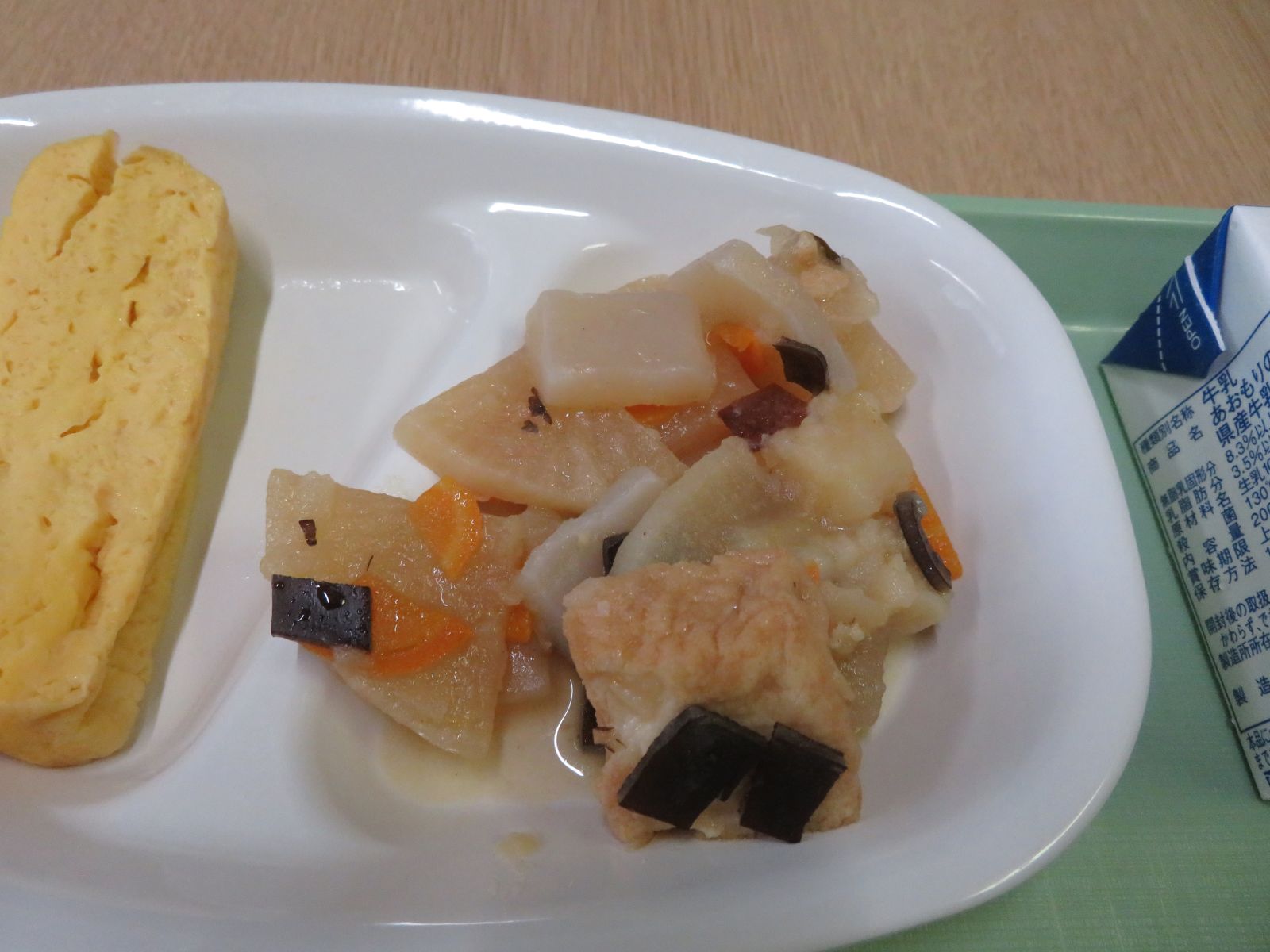 今日の給食は,ご飯,牛乳,小松菜と白菜の味噌汁,ごんざ(奈良県の郷土料理),県産厚焼きたまごでした。小松菜と白菜の味噌汁には鶏だんごも入っていてとてもおいしかったです。また,ごんざは奈良県の郷土料理で生揚げや大根,こんにゃくなどが入っていて子どもたちにも食べやすかったです。給食センターの皆さん,今週の給食もどれもとてもおいしかったです。いつも心のこもったおいしい給食を作っていただき本当にありがとうございます。