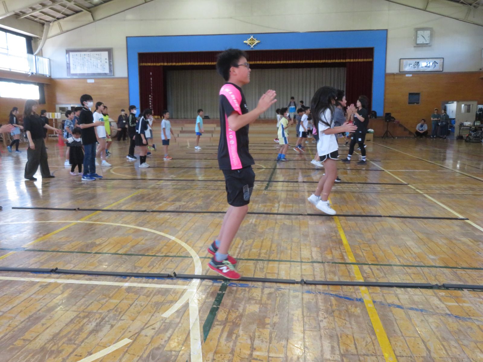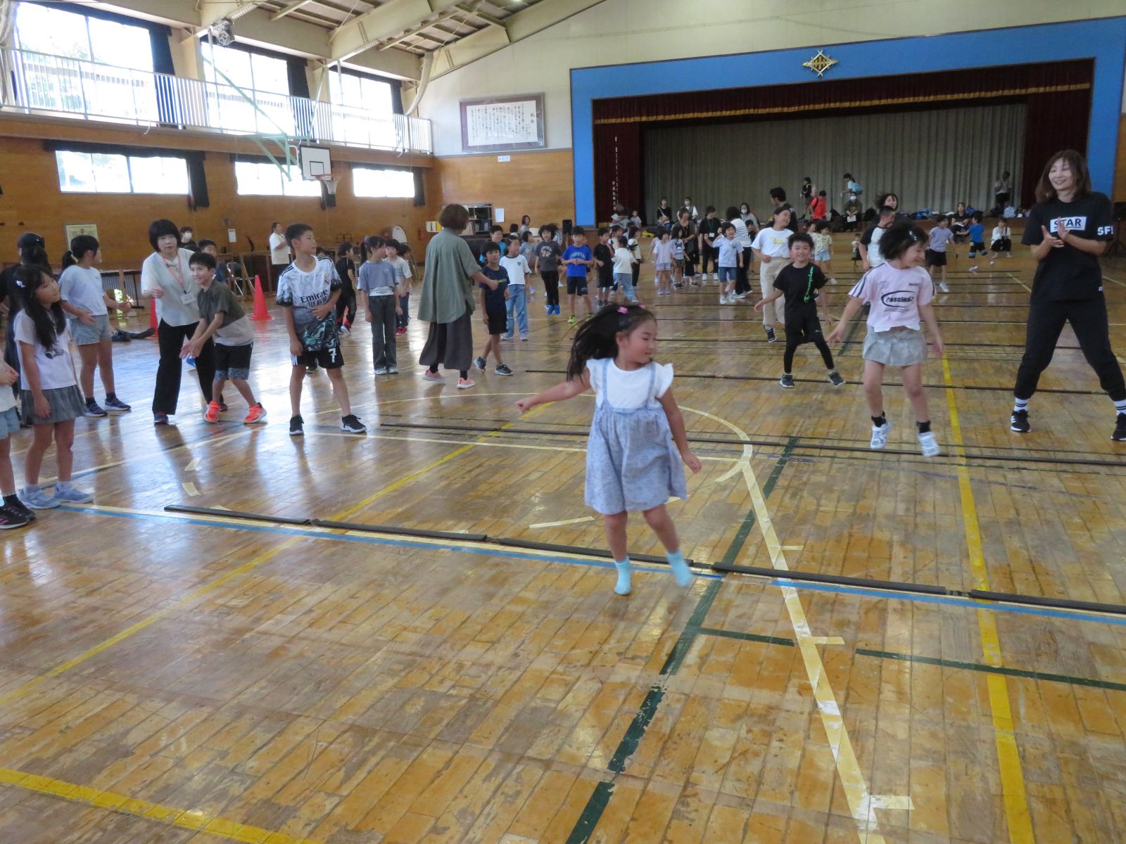 リズムジャンプ体験会の様子です。リズムに乗って楽しく体を動かしました。インストラクターの皆さん,ありがとうございました。