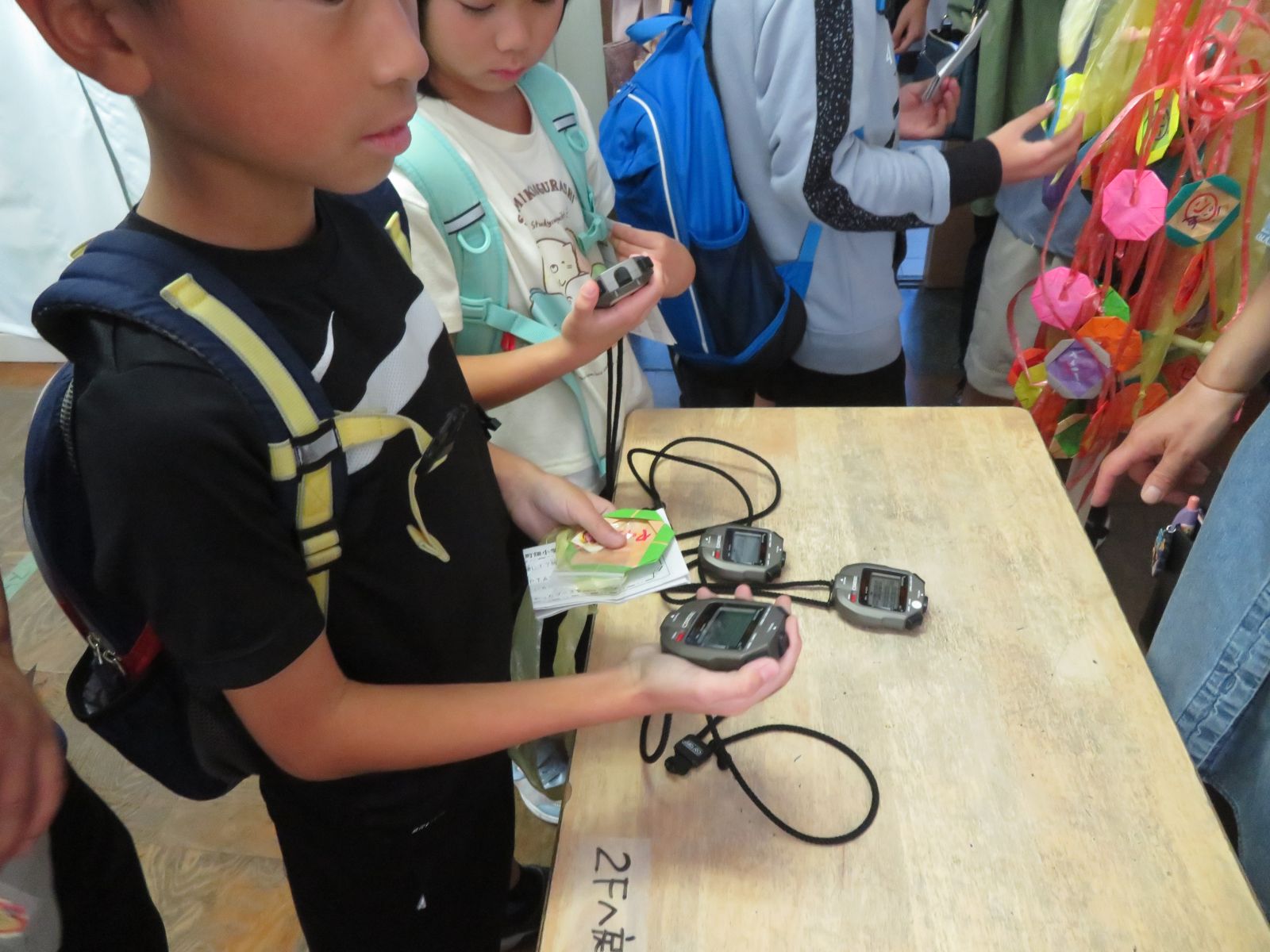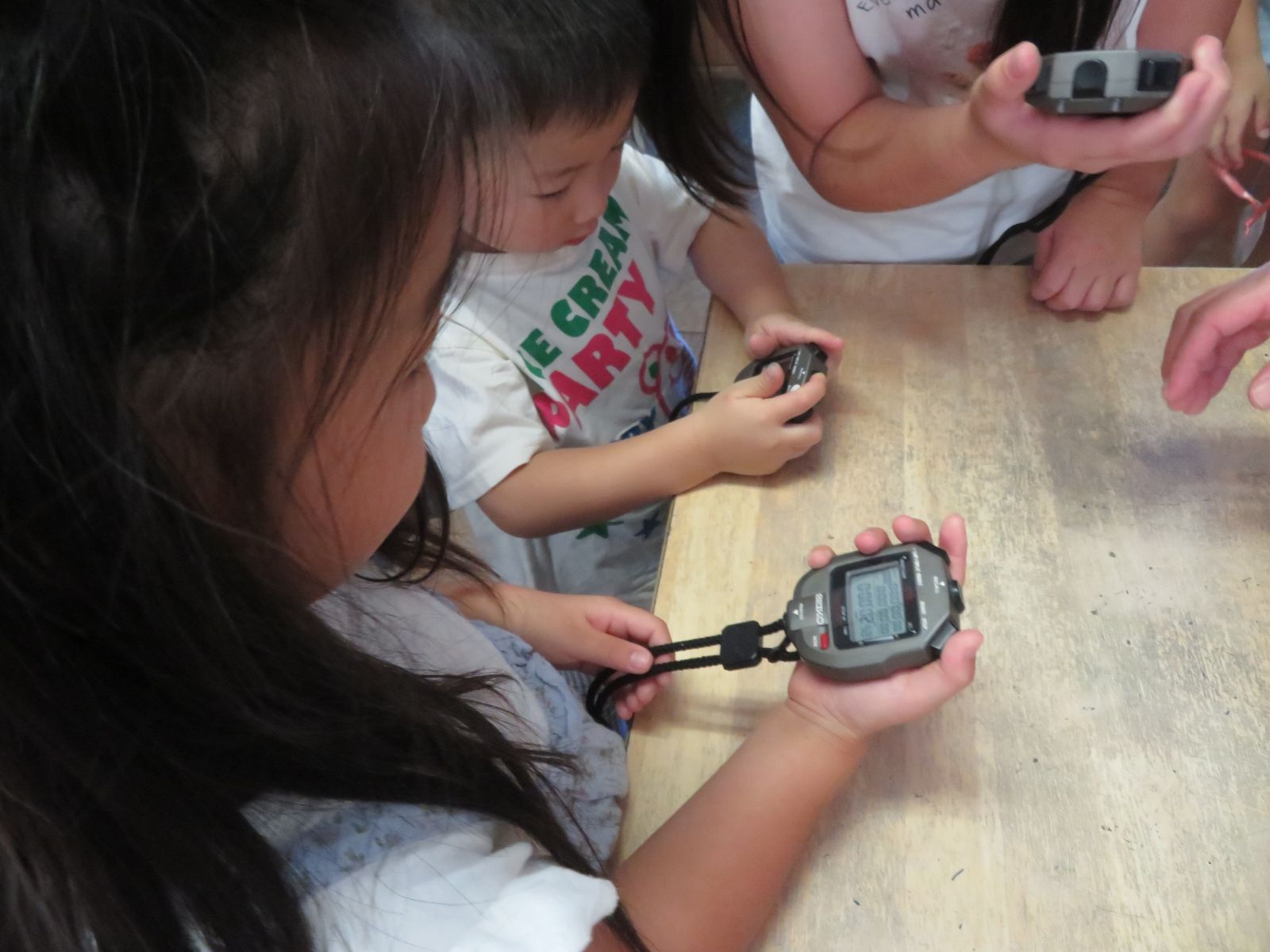 ストップウオッチ10秒チャレンジ 難しいけれどぴったりの人もいました。すごい!