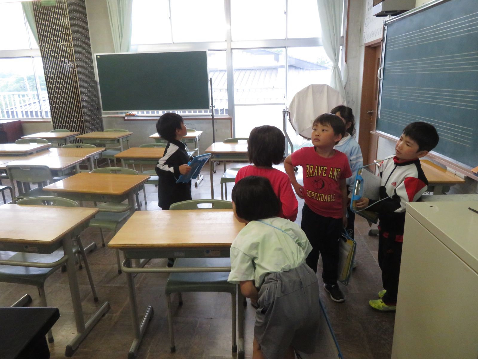 5時間目に2年生の皆さんが1年生を案内してくれました。グループごとに移動し,2年生から部屋の説明があったあと,いろいろなミッションを出して1年生を楽しませてくれました。2年生の皆さんがたのもしいお兄さん,お姉さんになって1年生をしっかりお世話してくれました。