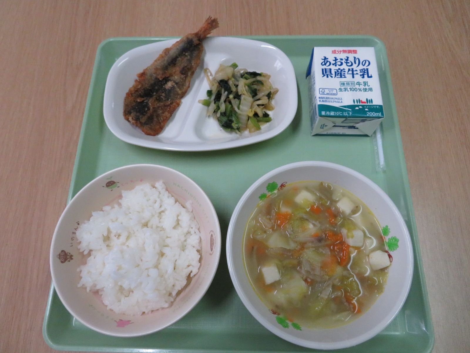 今日の給食は,ご飯,牛乳,塩豚汁,イワシ開きスタミナ竜田,白菜とホウレン草のお浸しでした。イワシは栄養豊富なお魚です。血液をサラサラにするEPAやDHA,疲労回復に役立つタウリンなどたくさんの栄養素が含まれています。給食をしっかり食べて寒さに負けない体をつくりましょう。給食センターの皆さん,今週の給食もおいしくいただきました。新しいメニューも多く,給食の時間がとても楽しい時間になっています。いつも本当にありがとうございます。