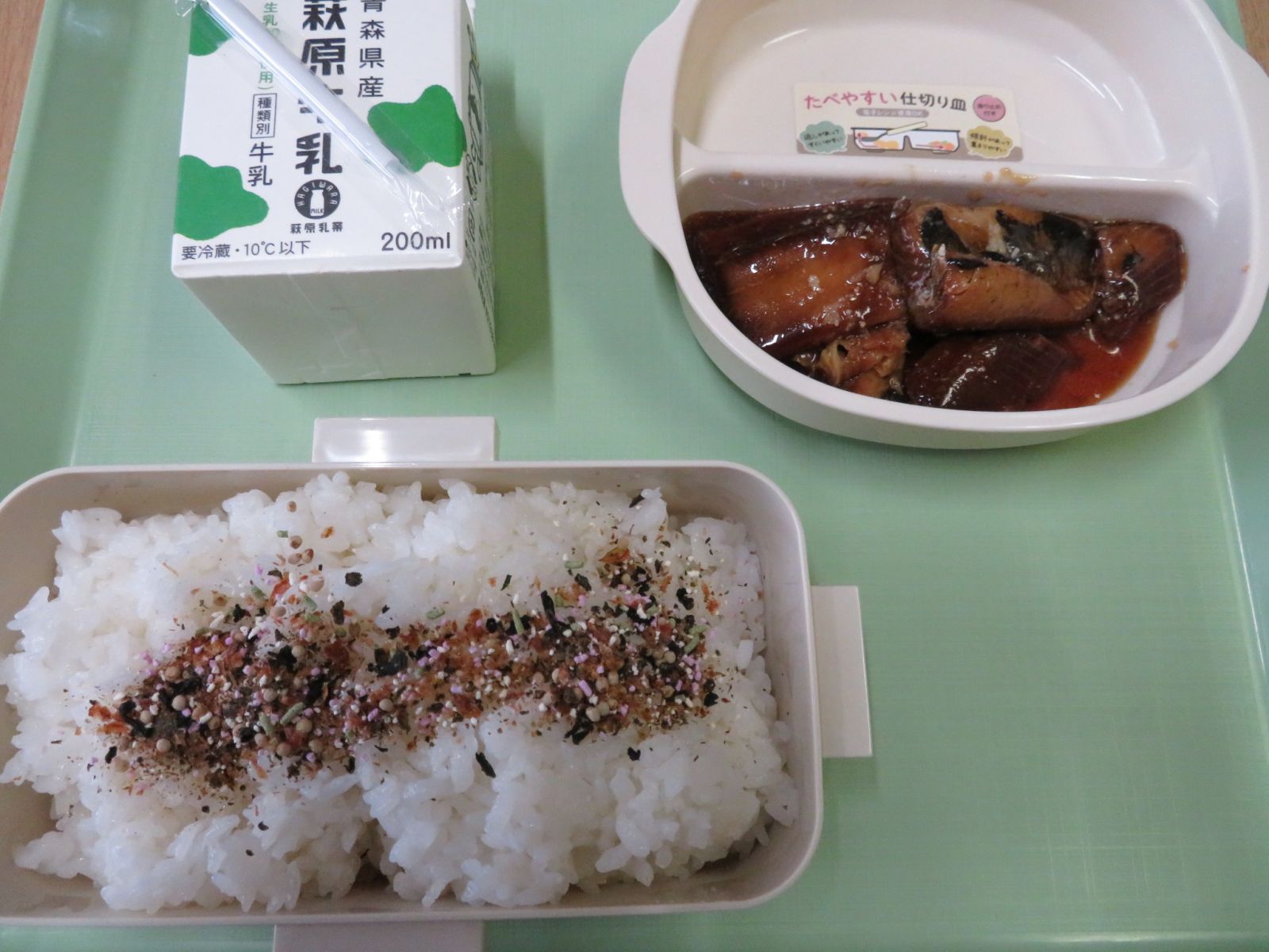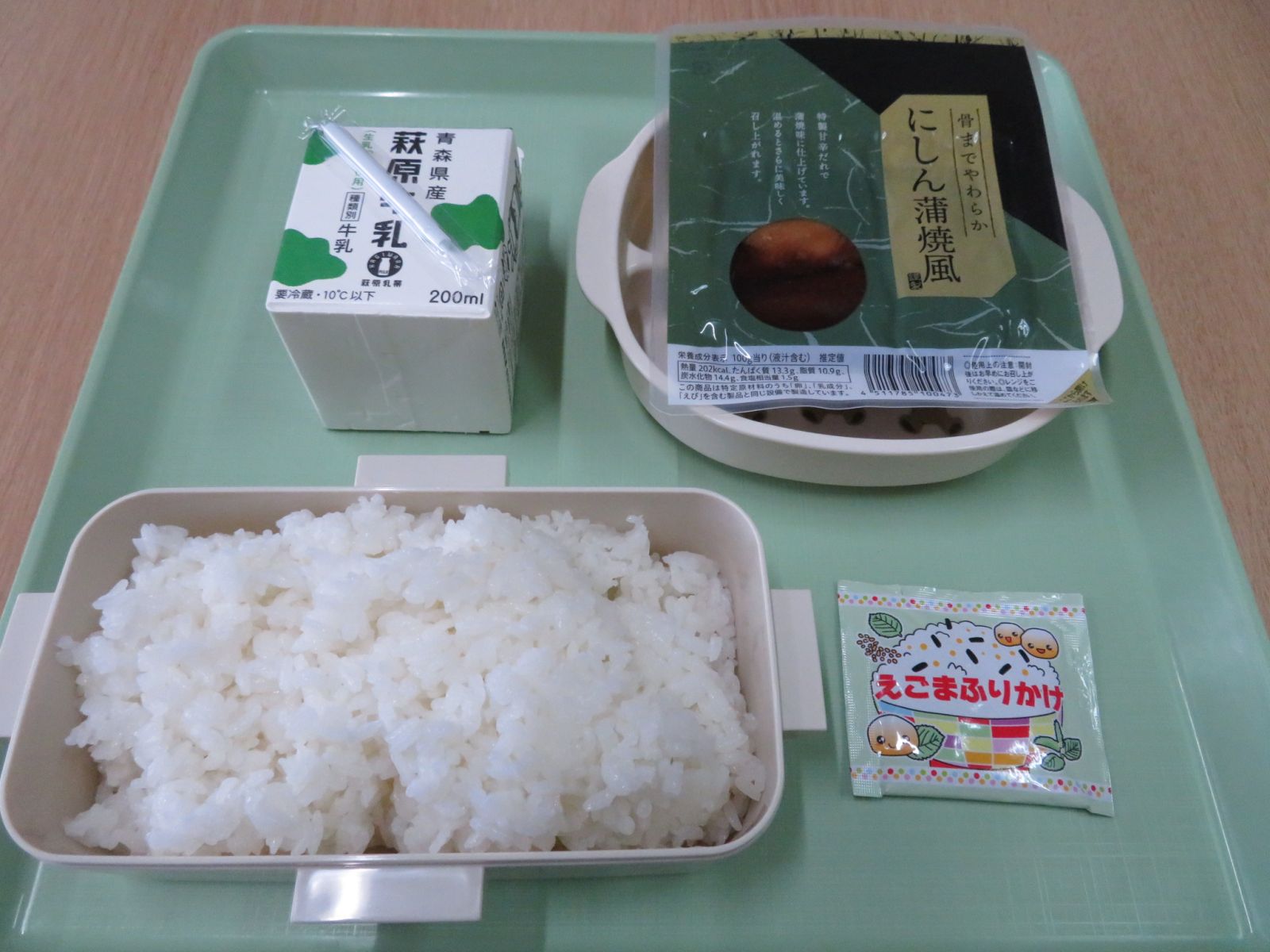 ご飯,牛乳,にしん蒲焼き,えごまふりかけ