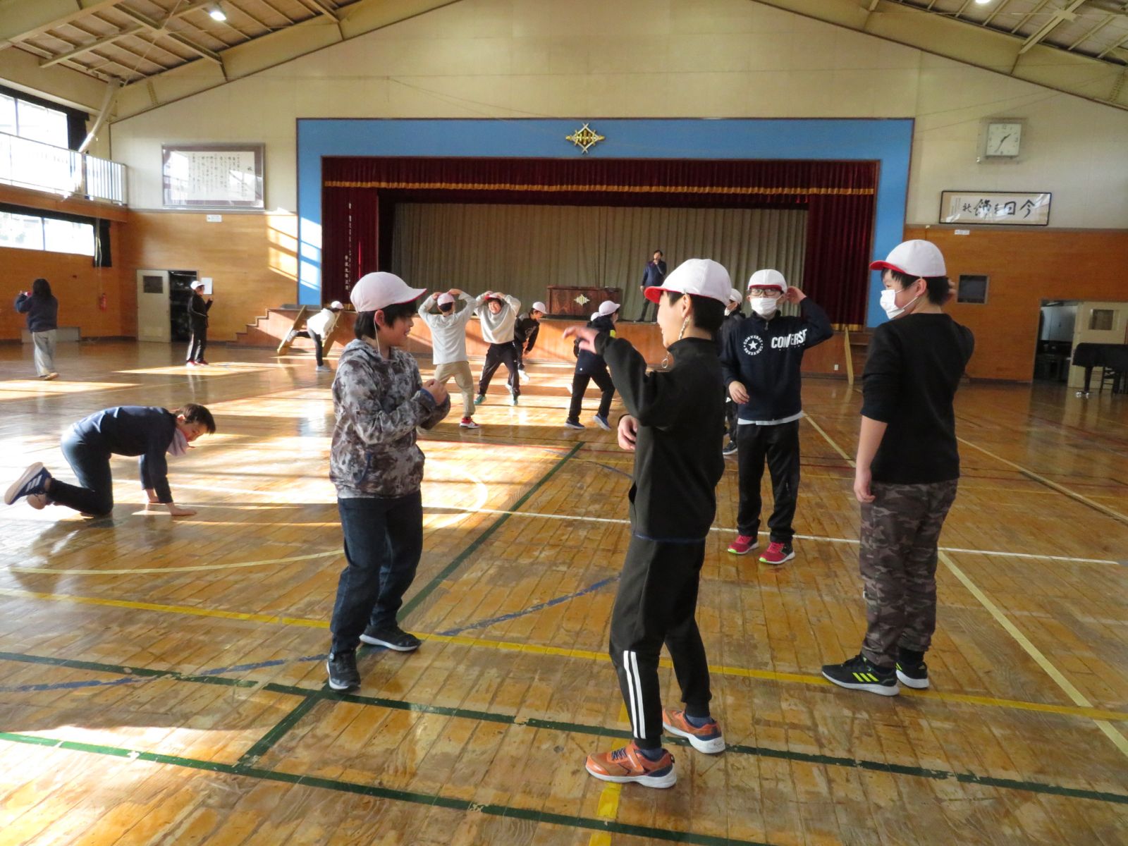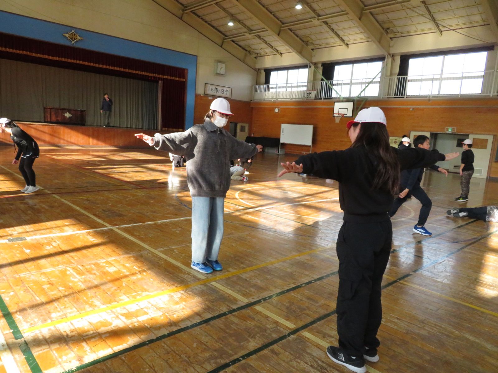 5時間目の5年生の様子です。ペアになって相手と同じ動きをしながらダンスを楽しんでいます。